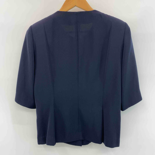 ノーブランド レディース ノーカラージャケット ネイビー 金ボタン 肩パッド入り