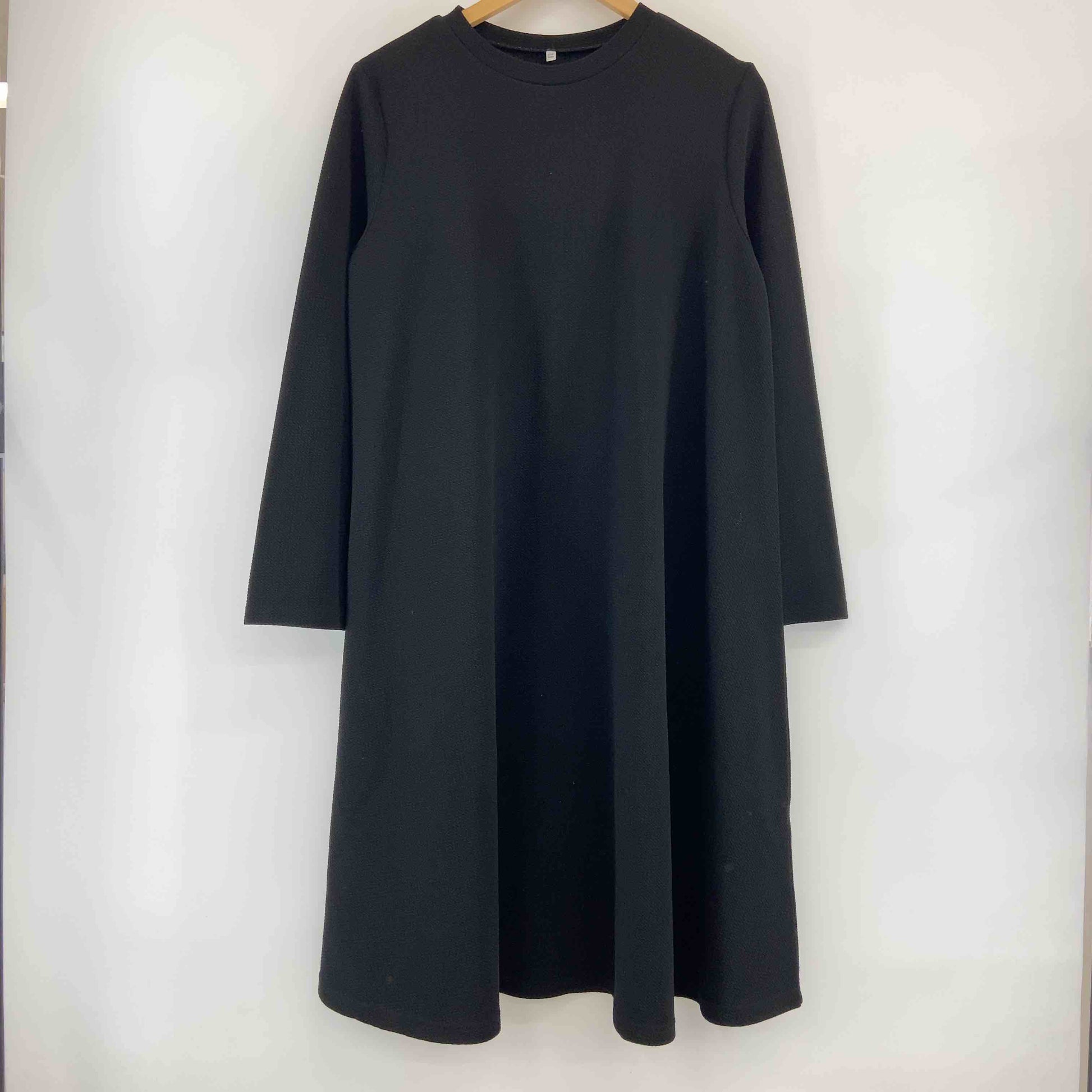 レディース 長袖ワンピース Tシャツワンピース エンボス ブラック