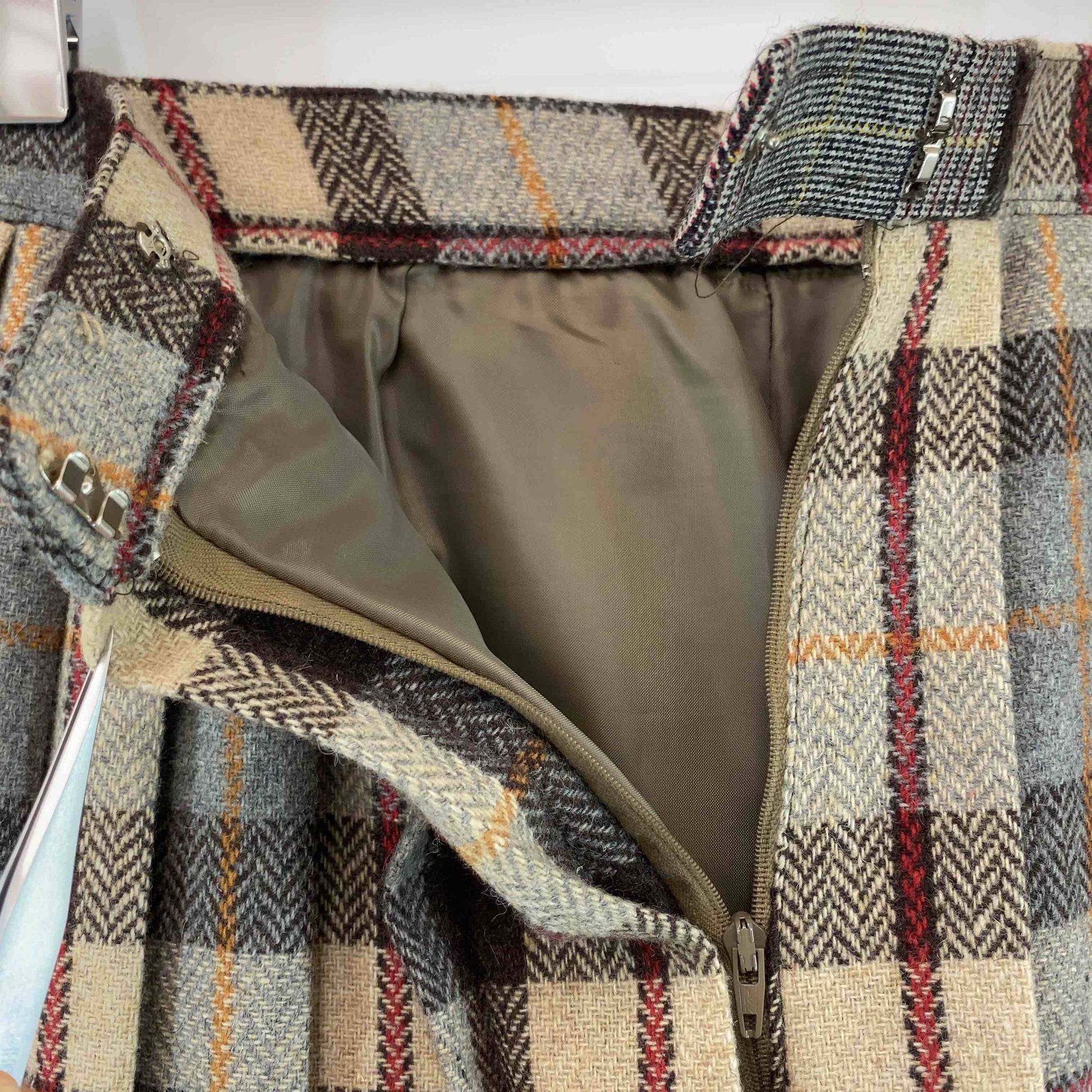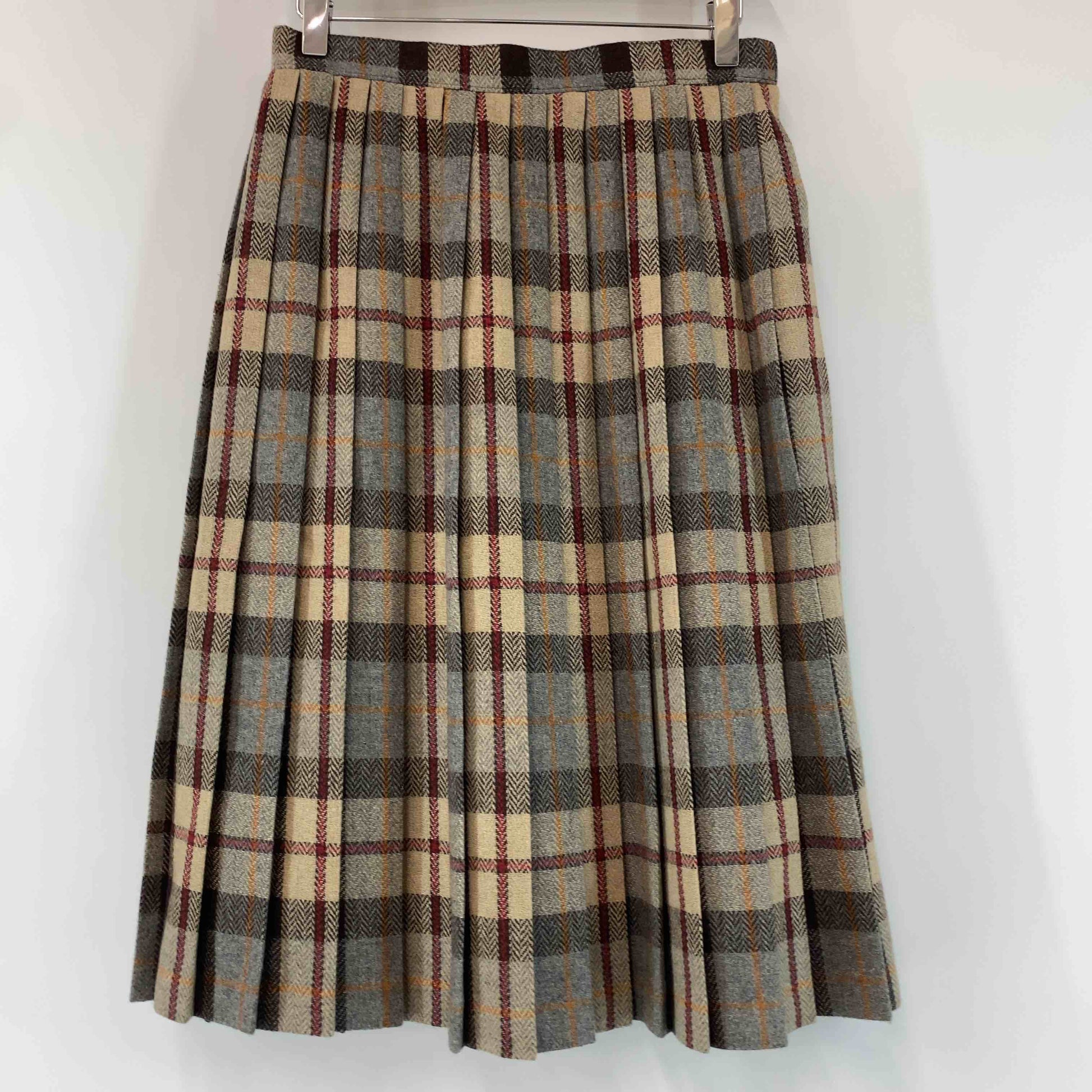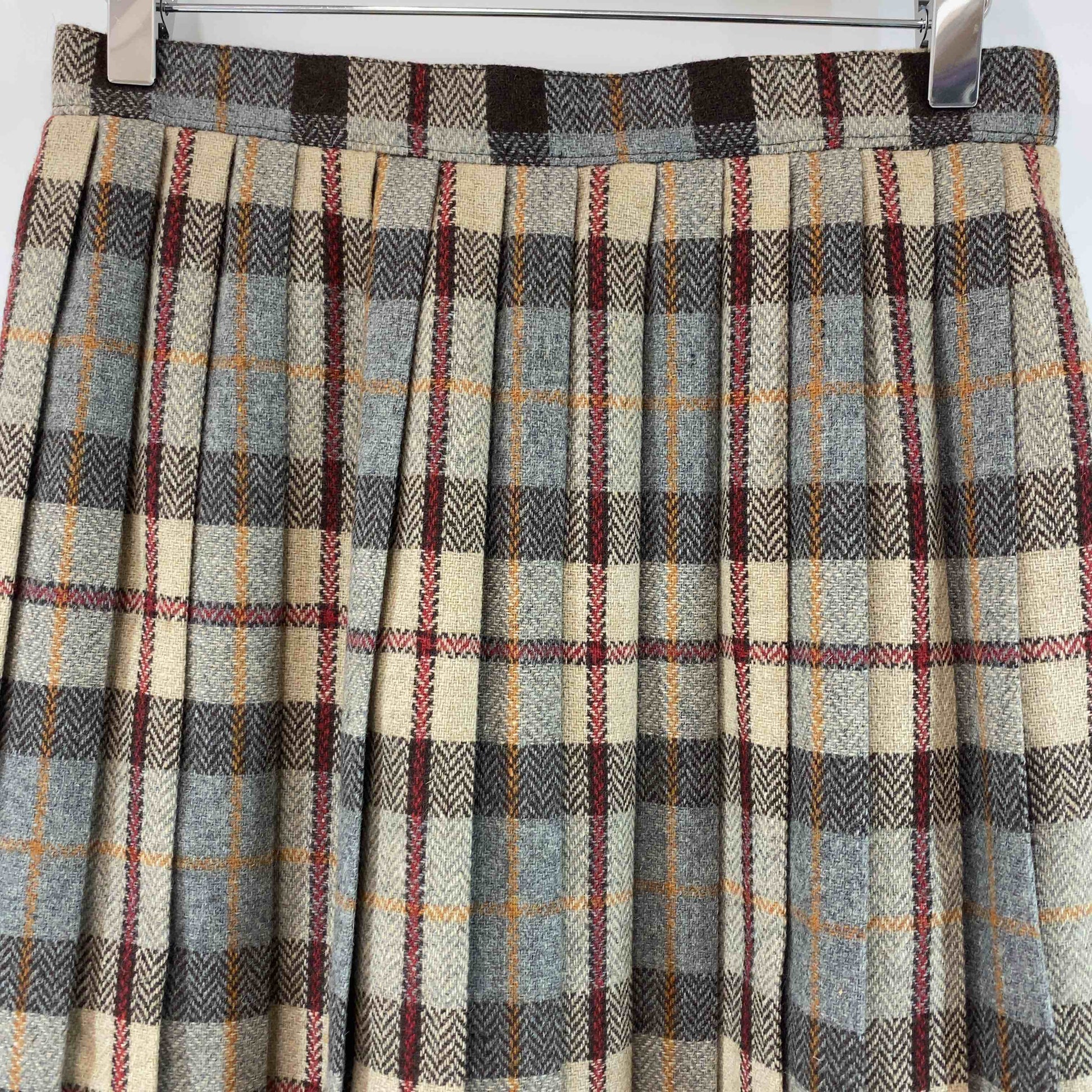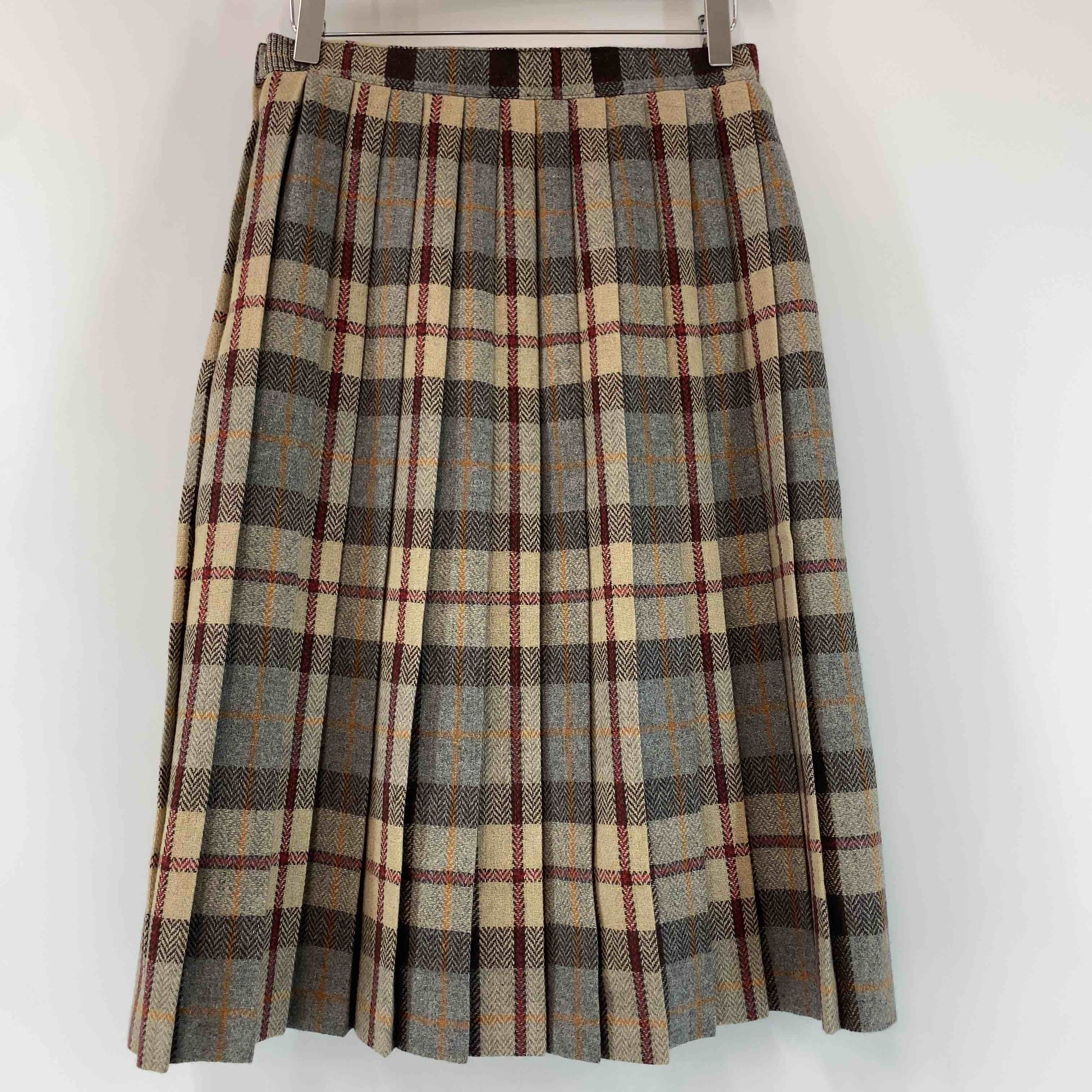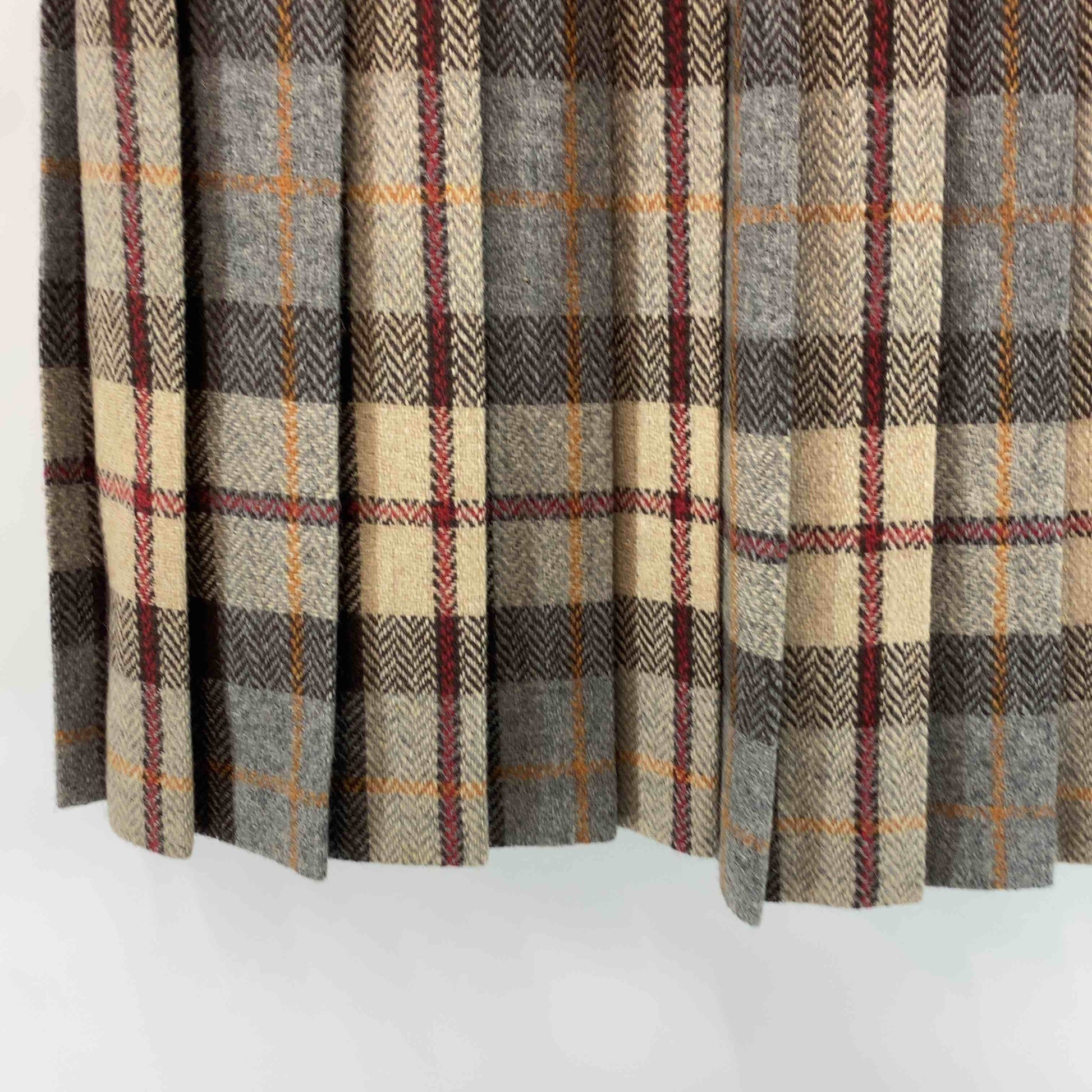 レディース ひざ丈スカート プリーツ チェック ヘリンボーン ブラウン