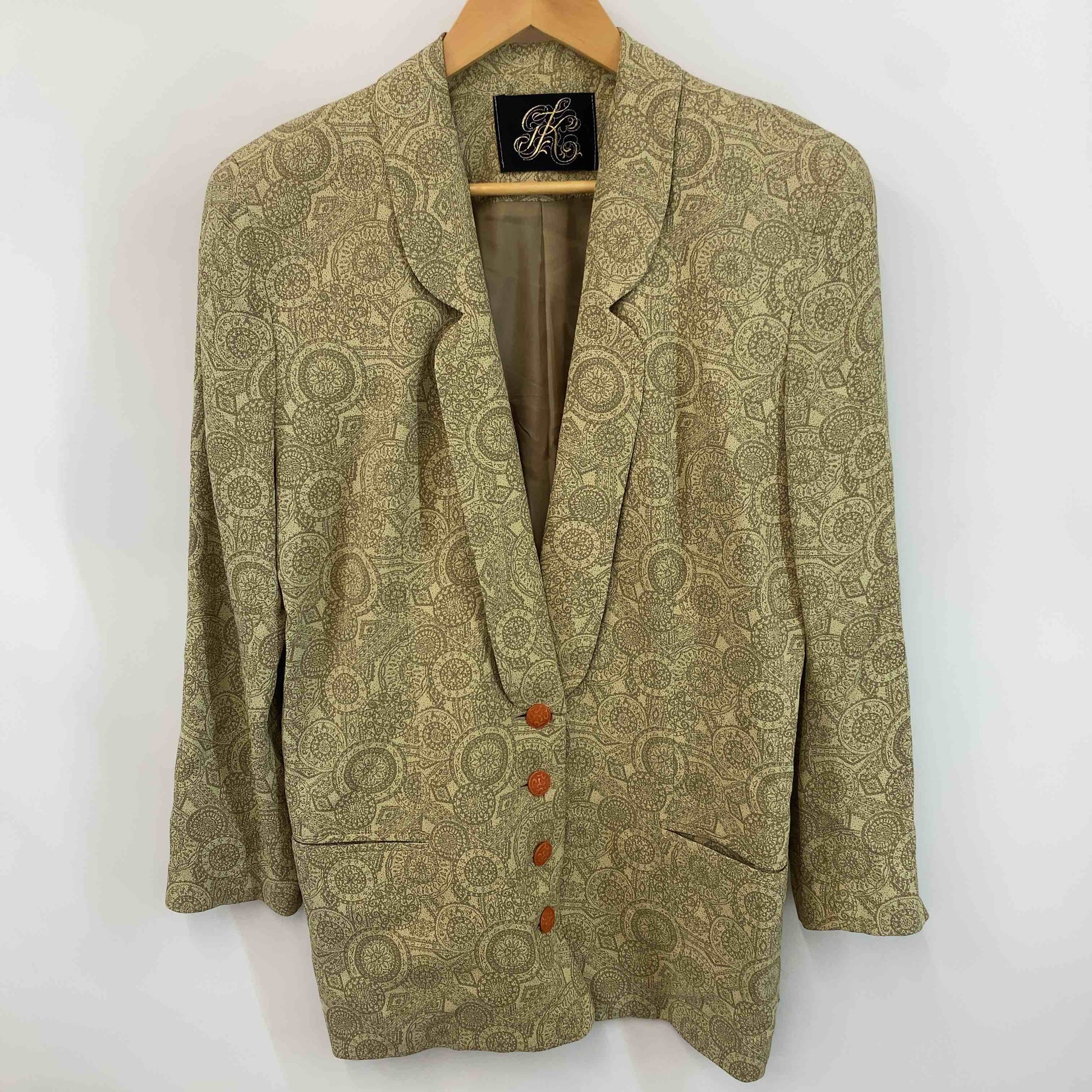 伊太利屋 レディース テーラードジャケット 総柄 イエロー系
