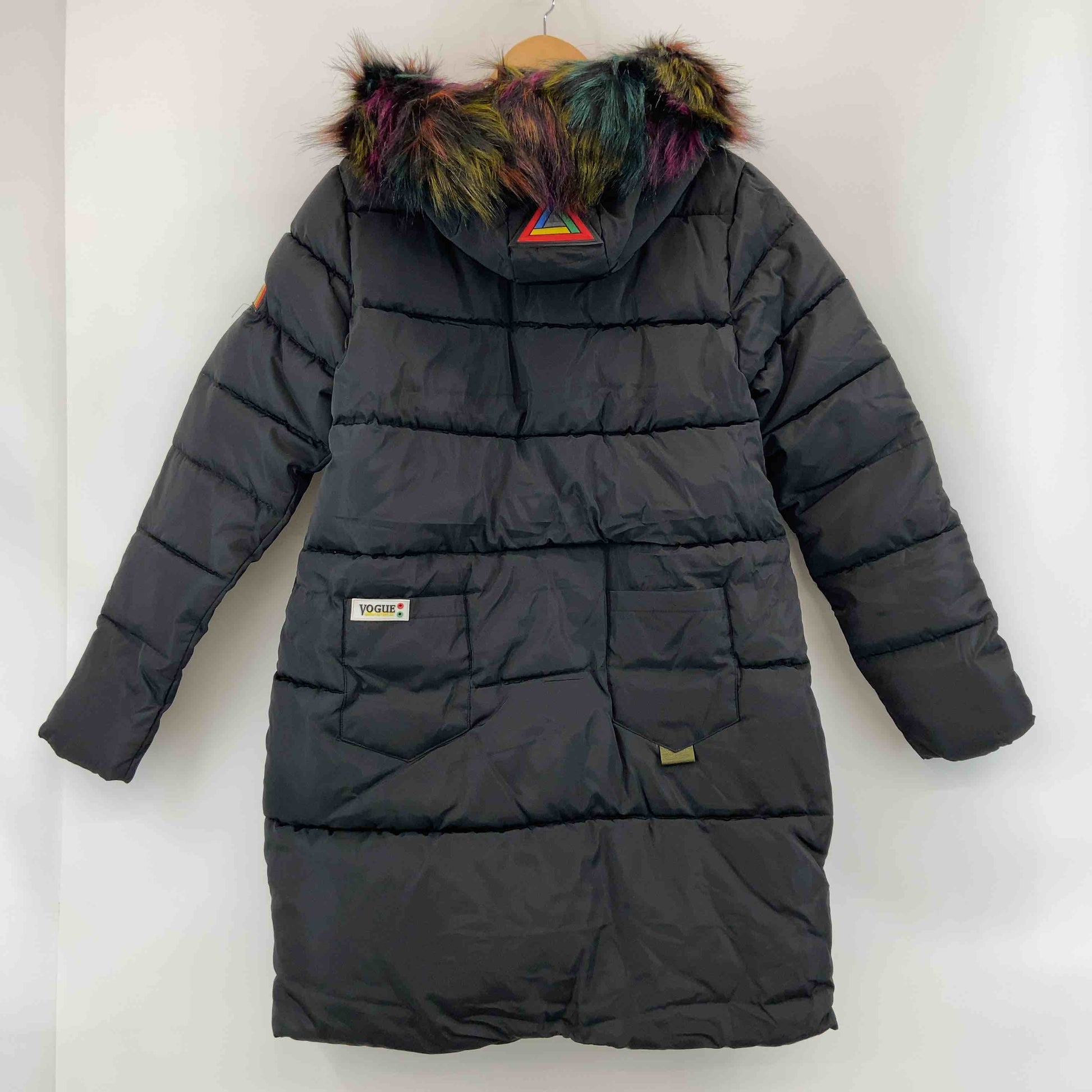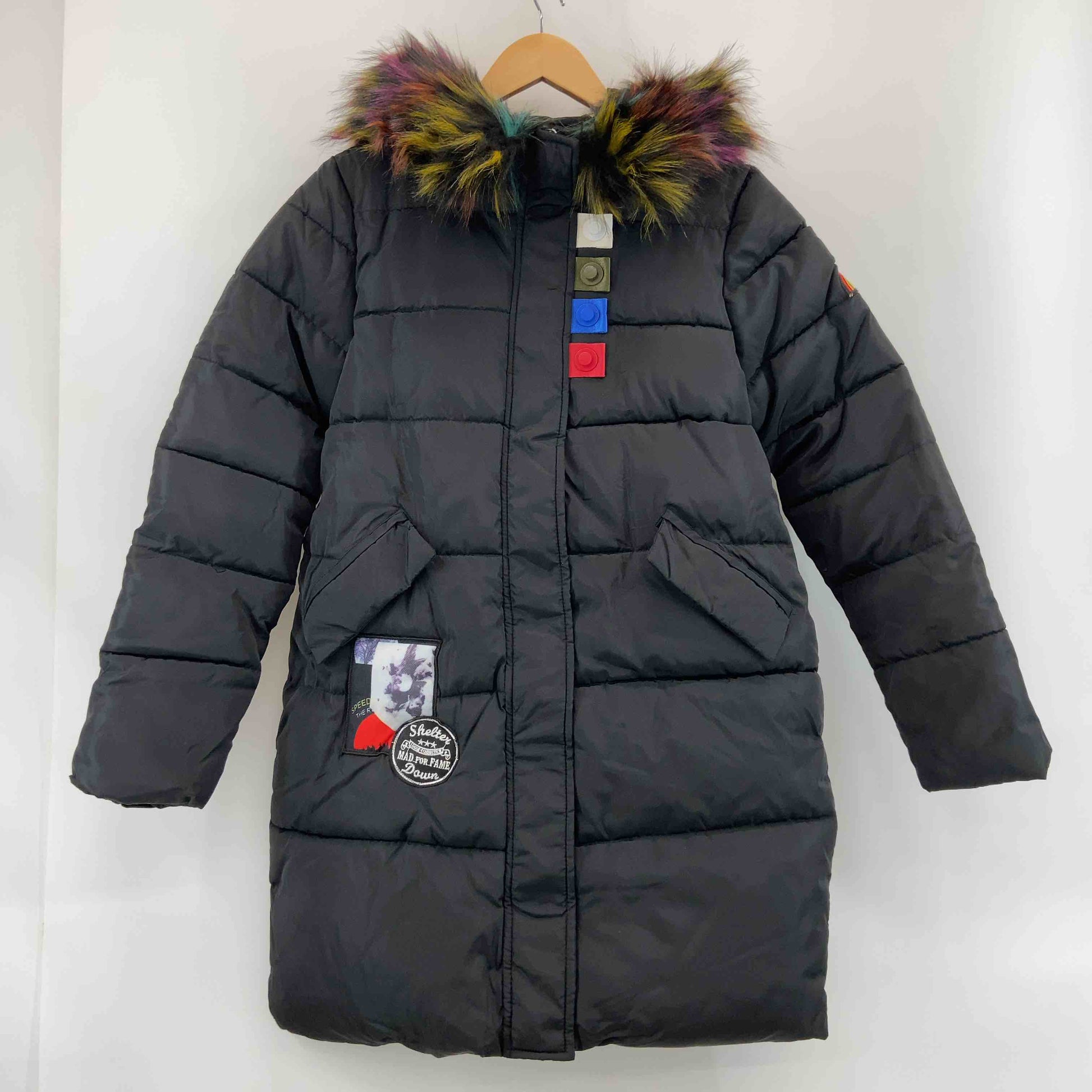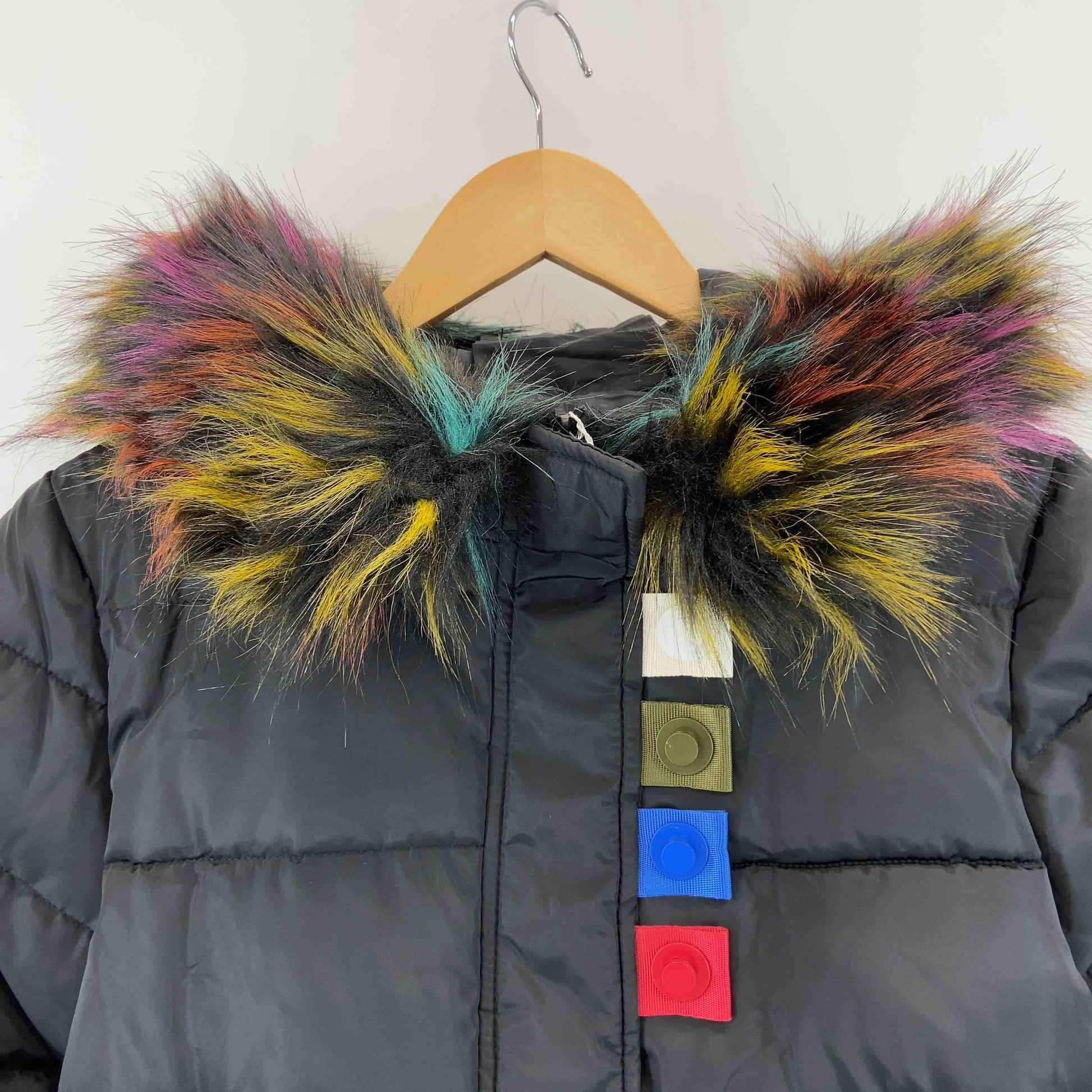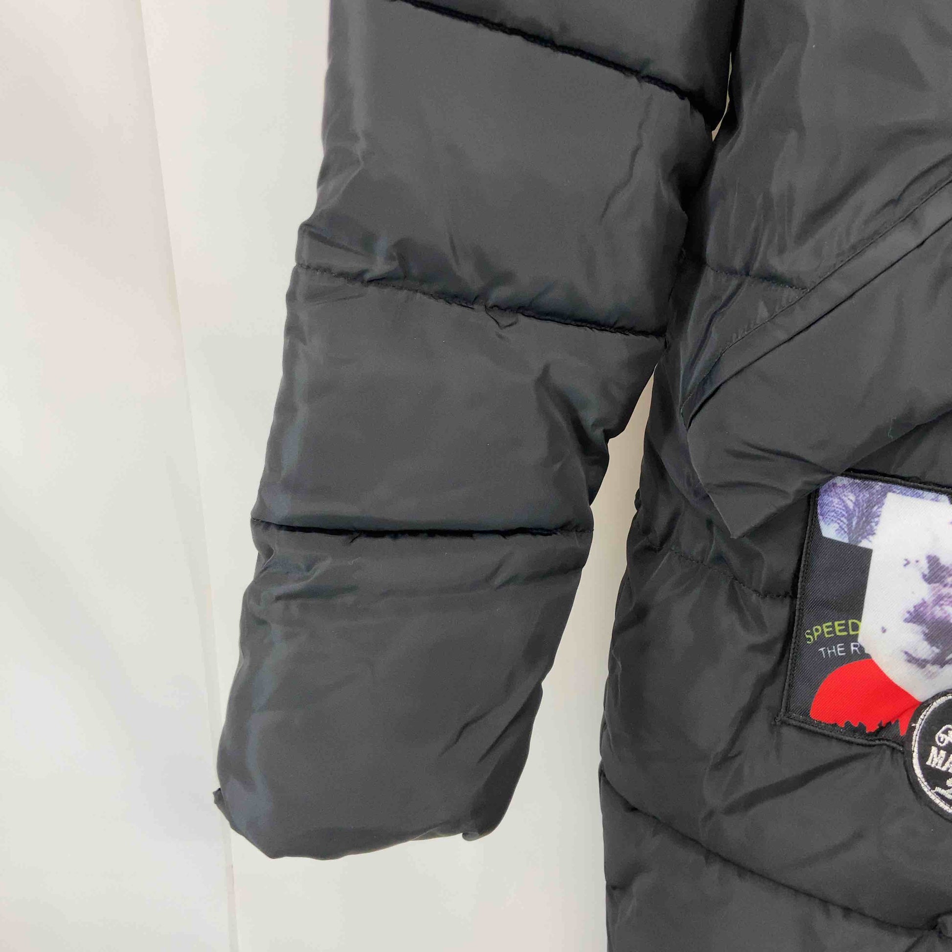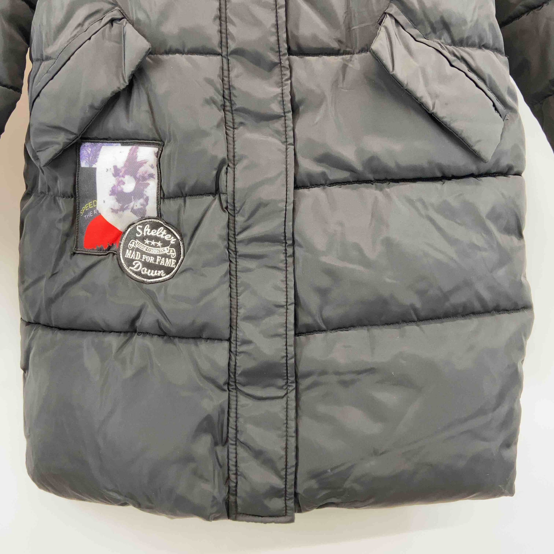 レディース 中綿コート ワッペン ファー付き 黒