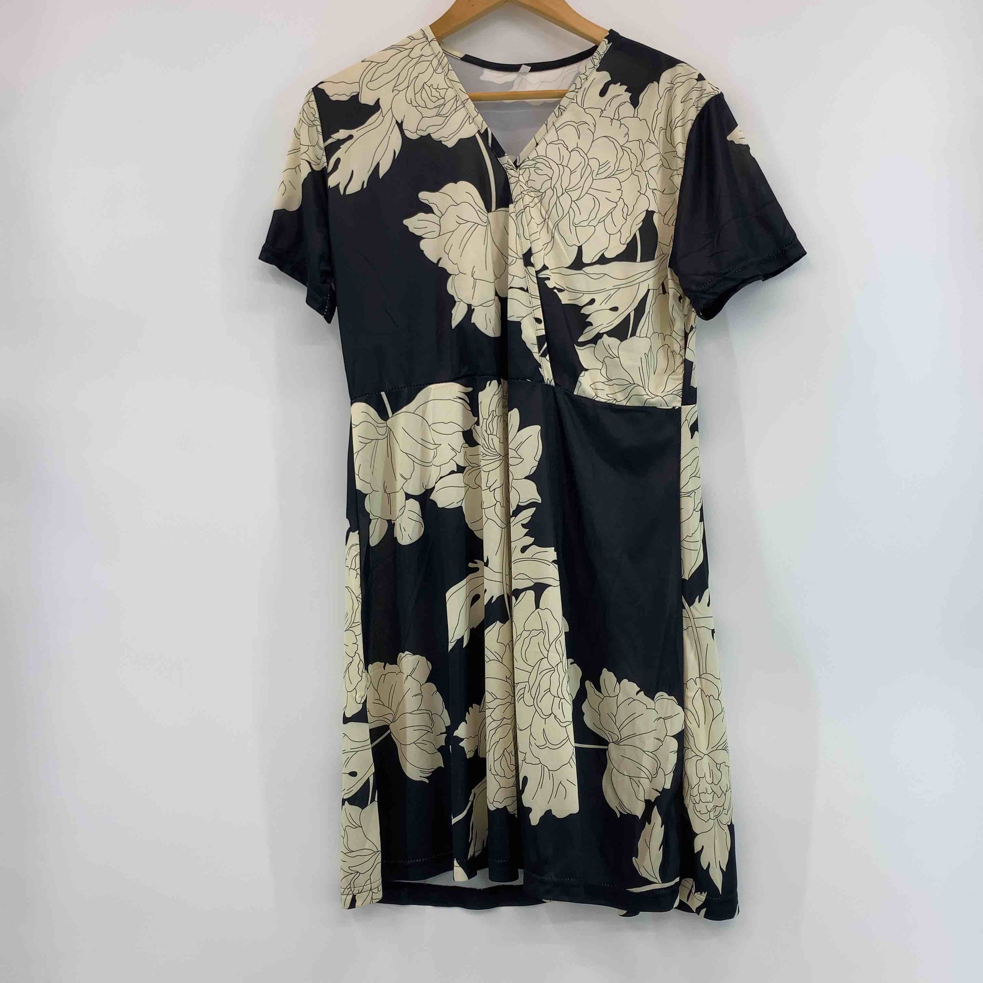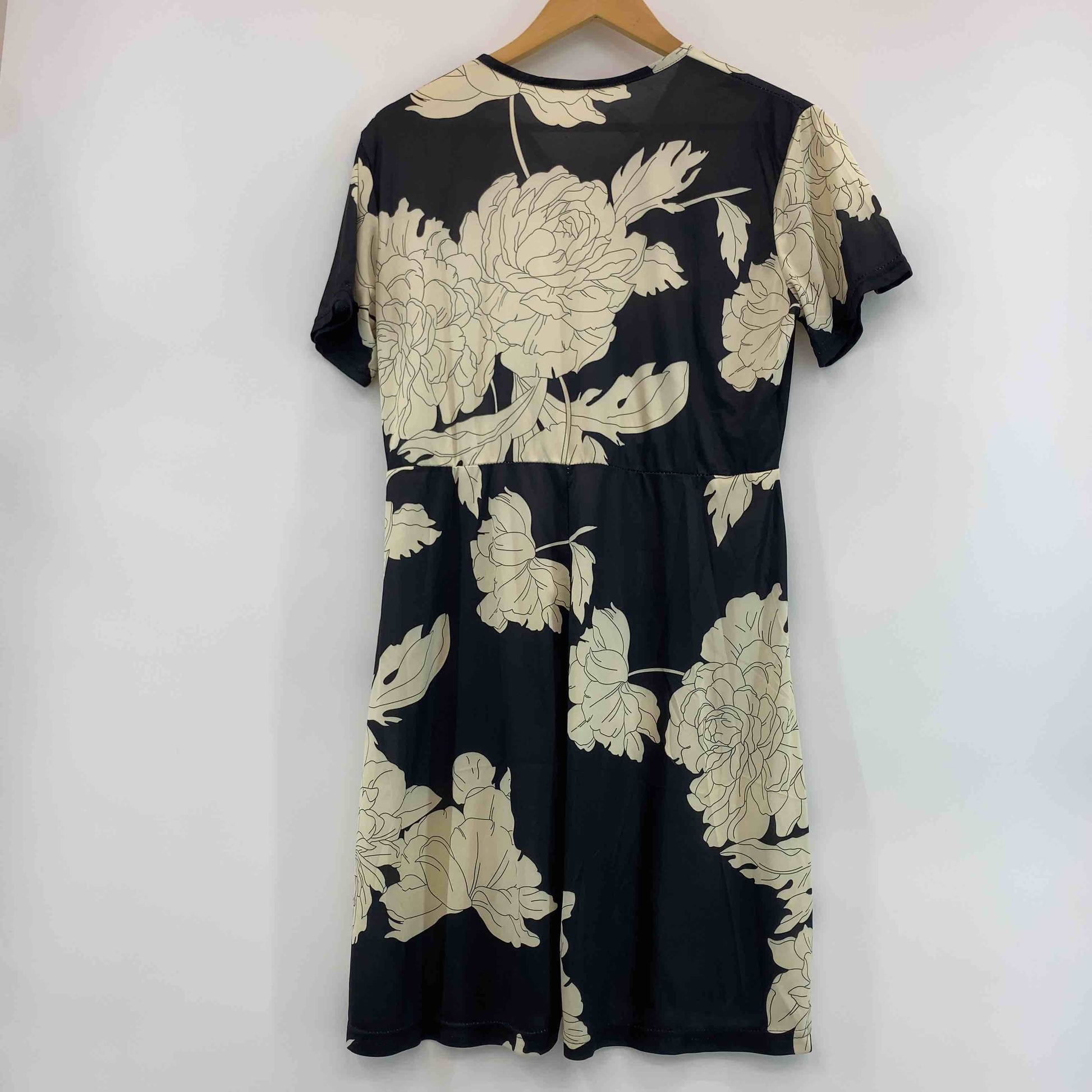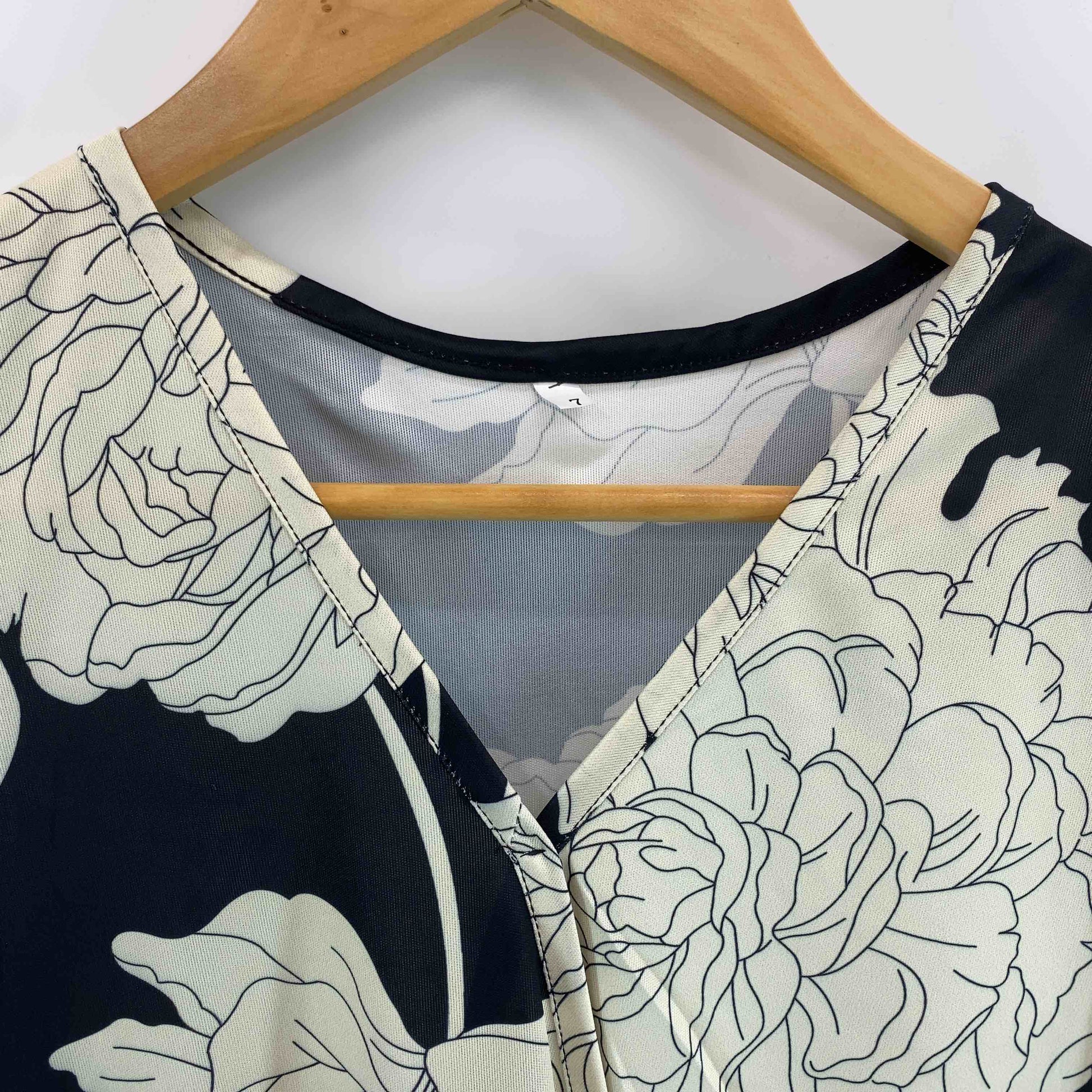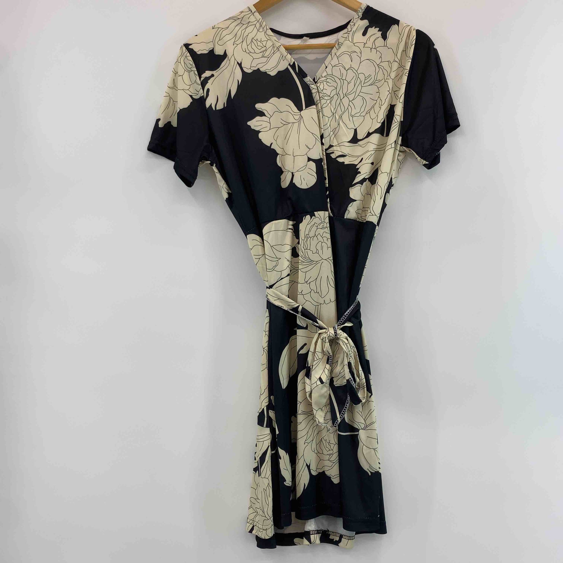 レディース 半袖 ミニワンピース 総柄 花柄 ウエスト切替 紐付き