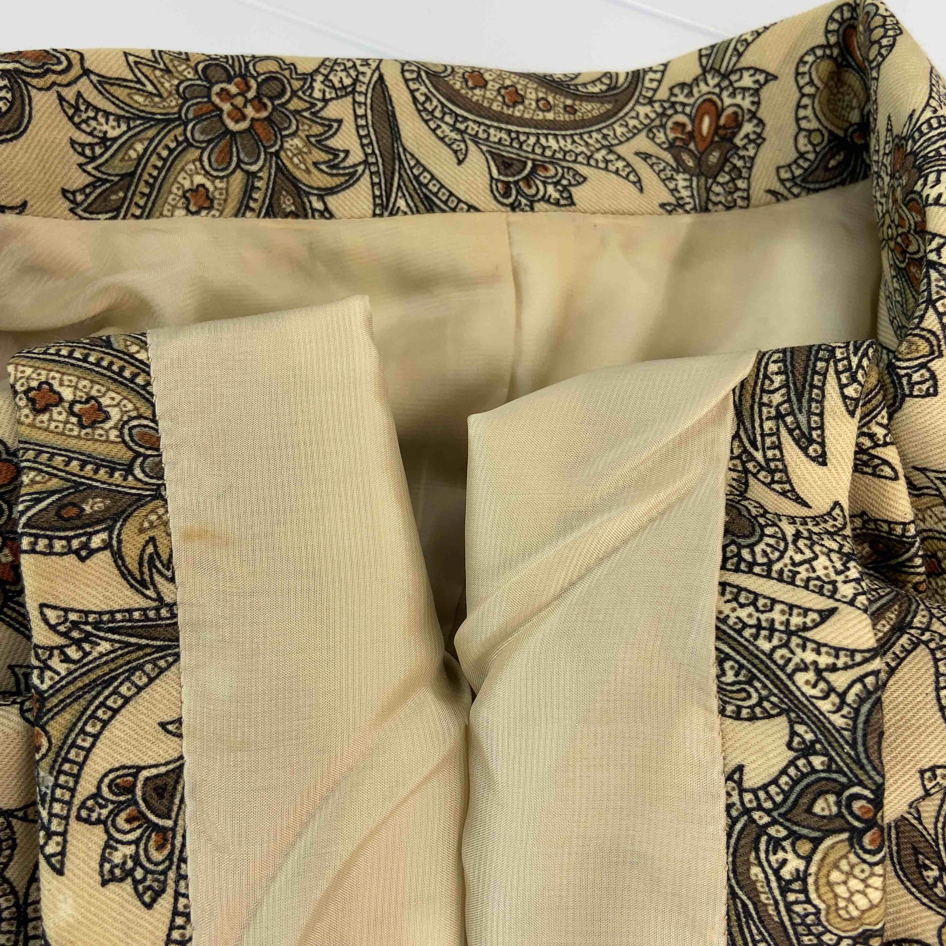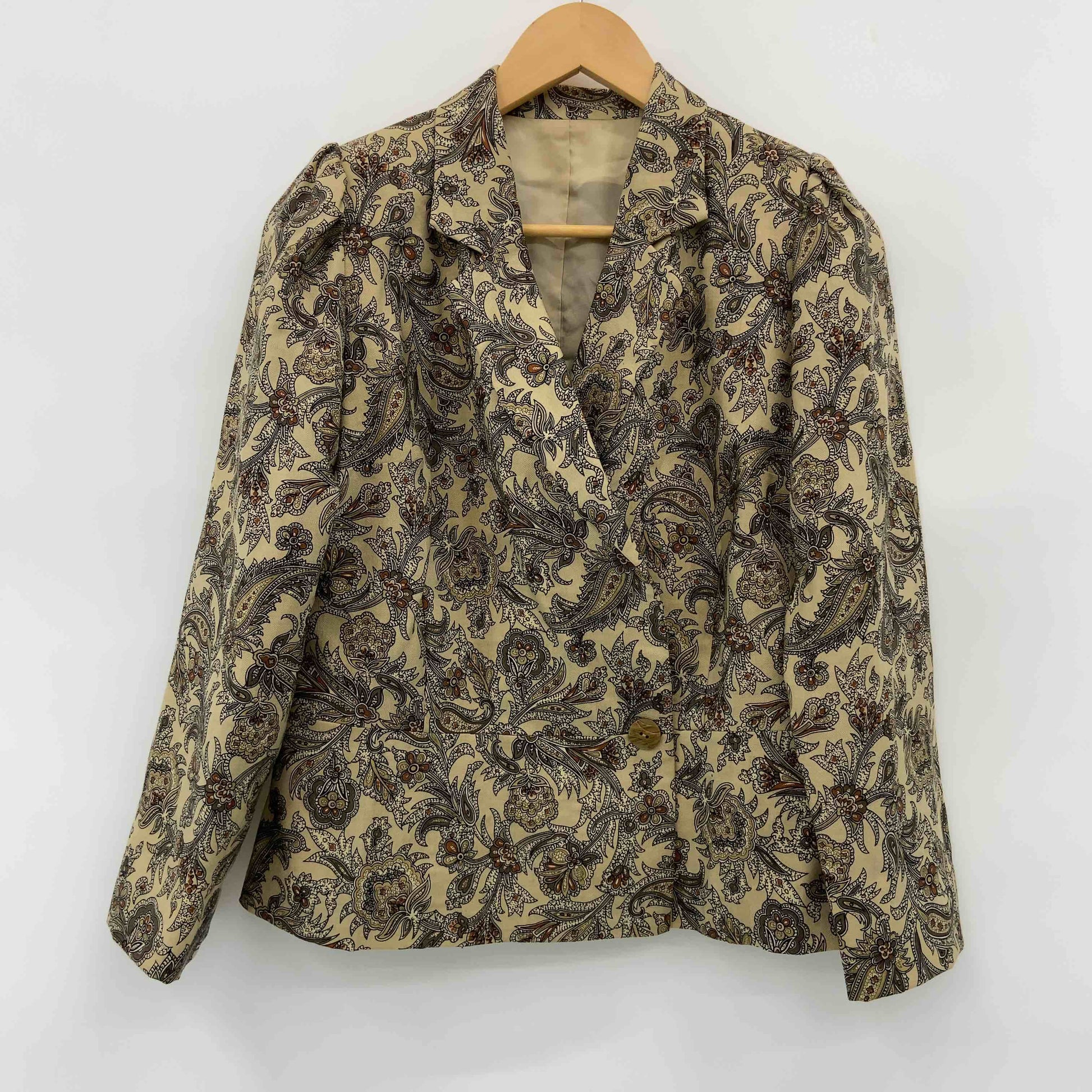 レディース テーラードジャケット セットアップ プリーツスカート 総柄 ベージュ 裏地