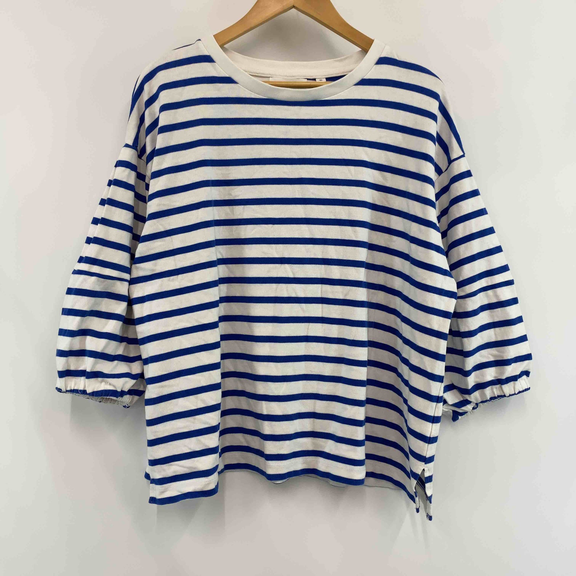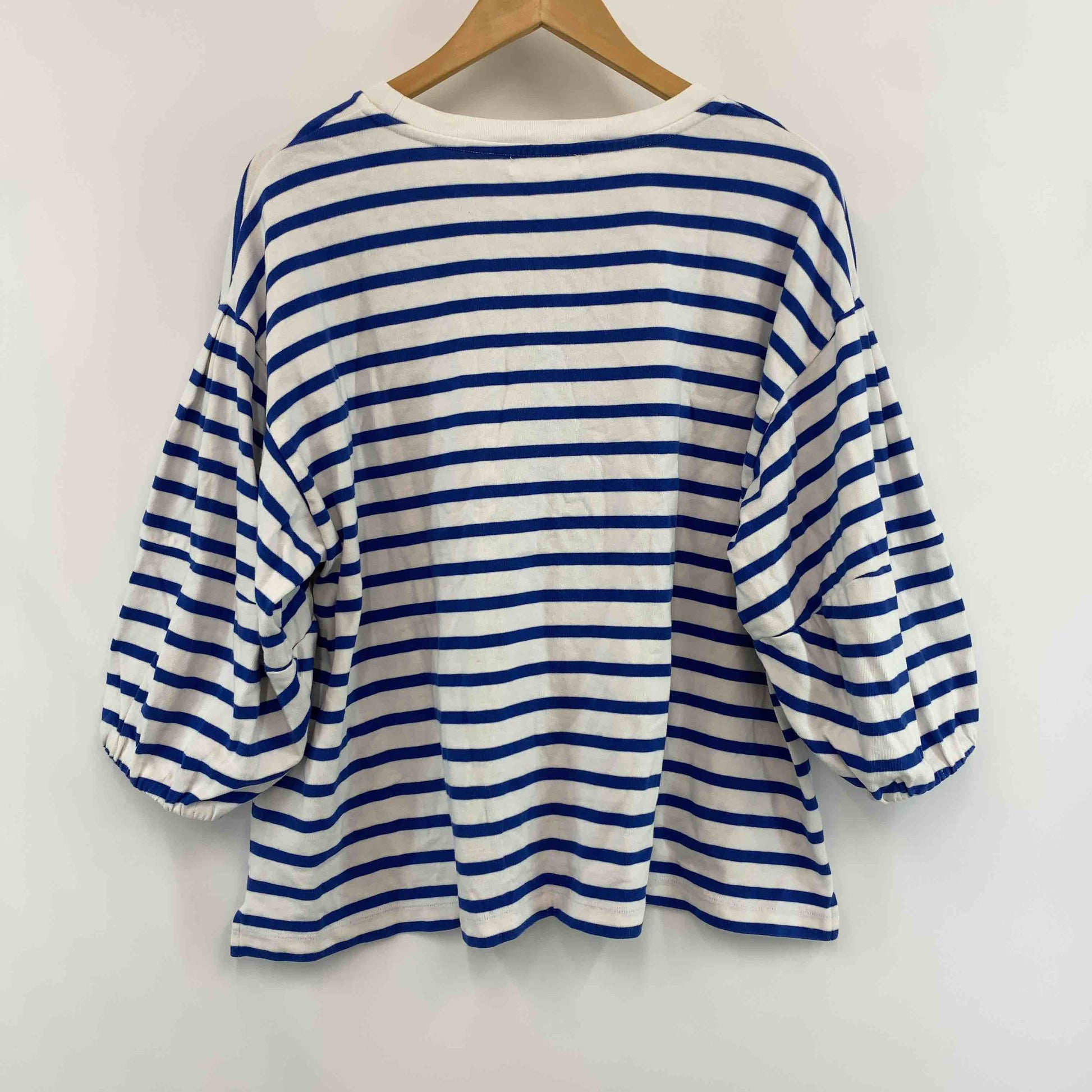 niko and... ニコアンド レディース カットソー長袖 ボーダー オフ×ブルー ボリュームスリーブ