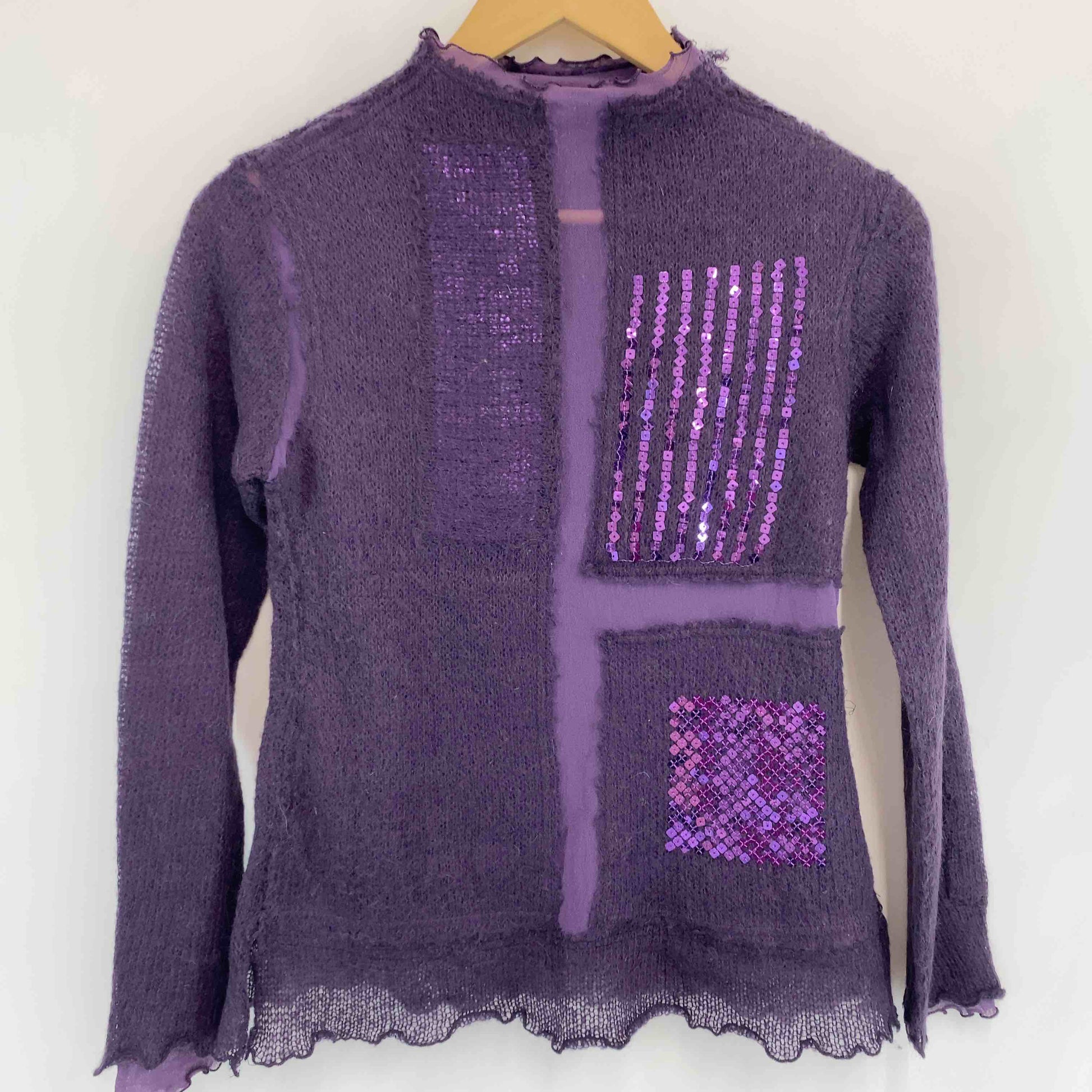 レディース ニット セーター スパンコール 装飾 紫 イタリア製