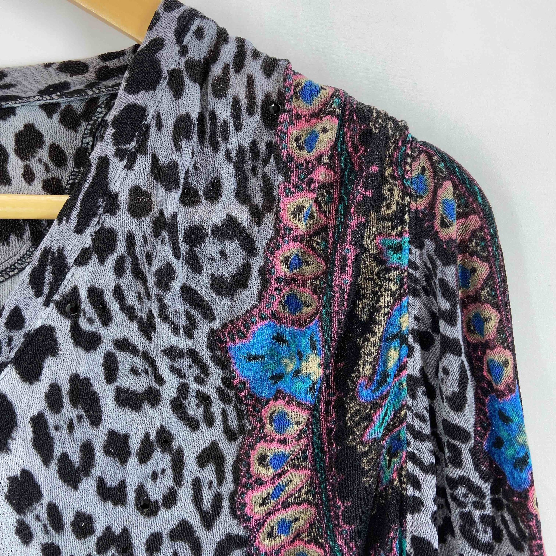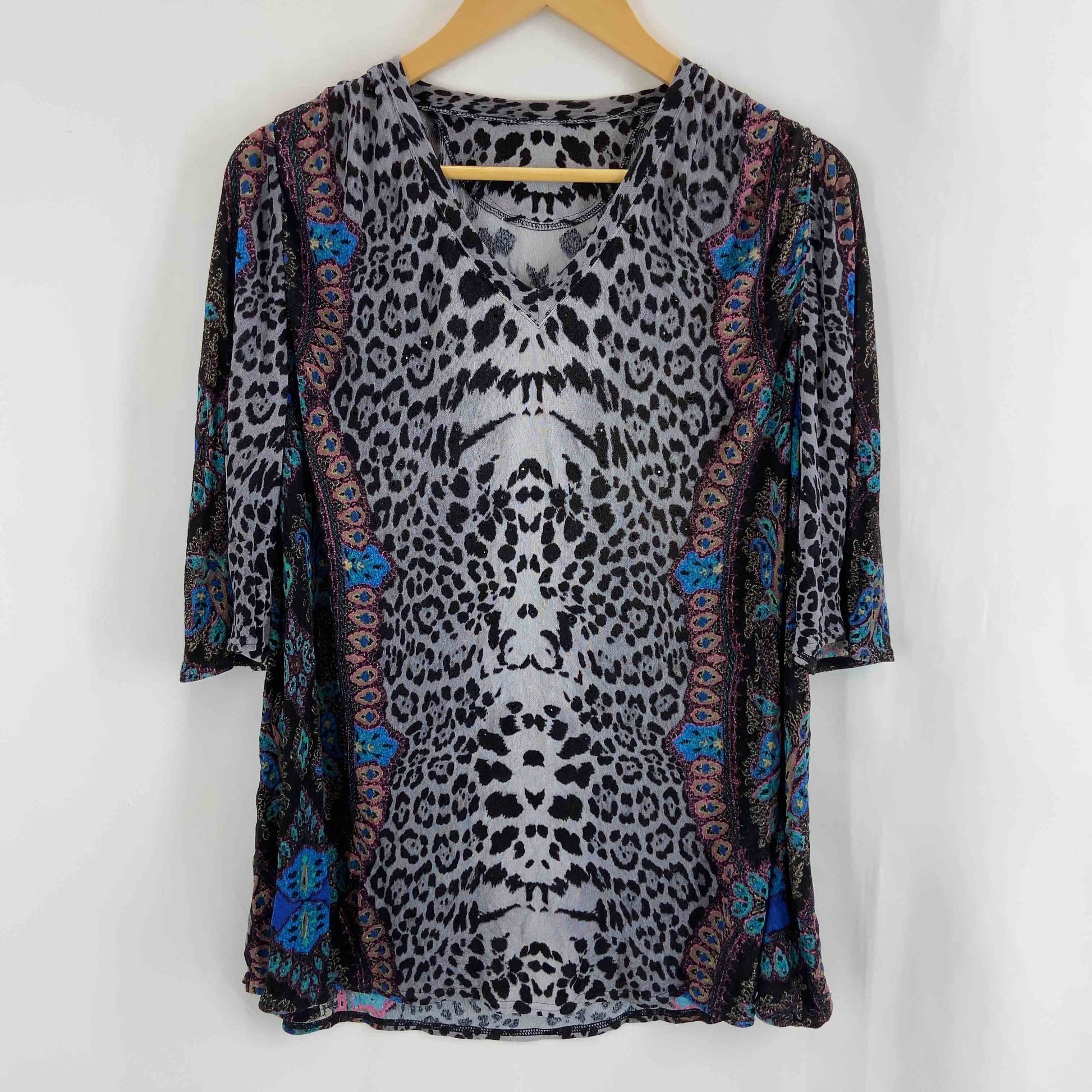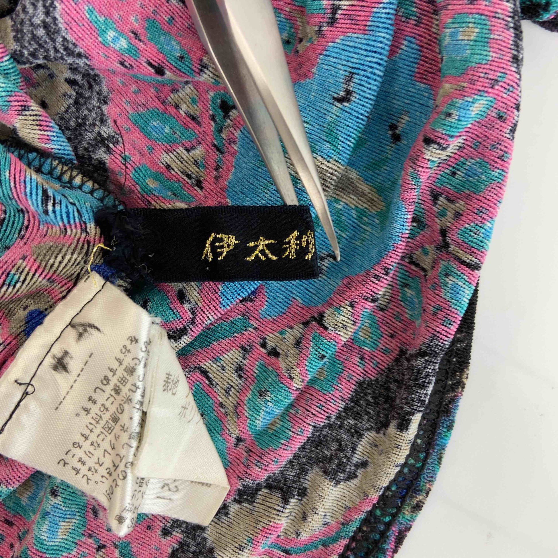 伊太利屋 イタリヤ レディース Tシャツ/カットソー 五分袖 ビーズ装飾 総柄 Vネック