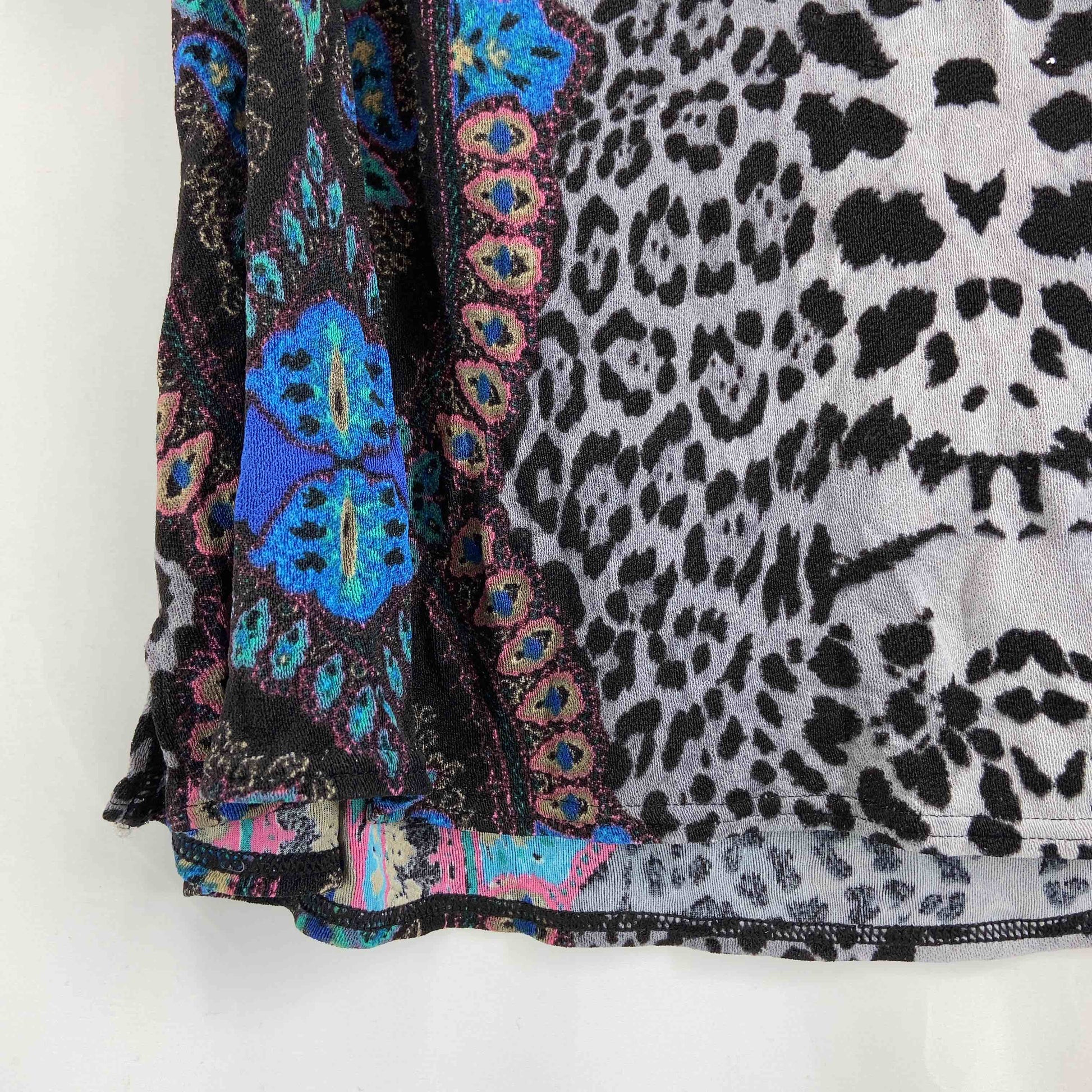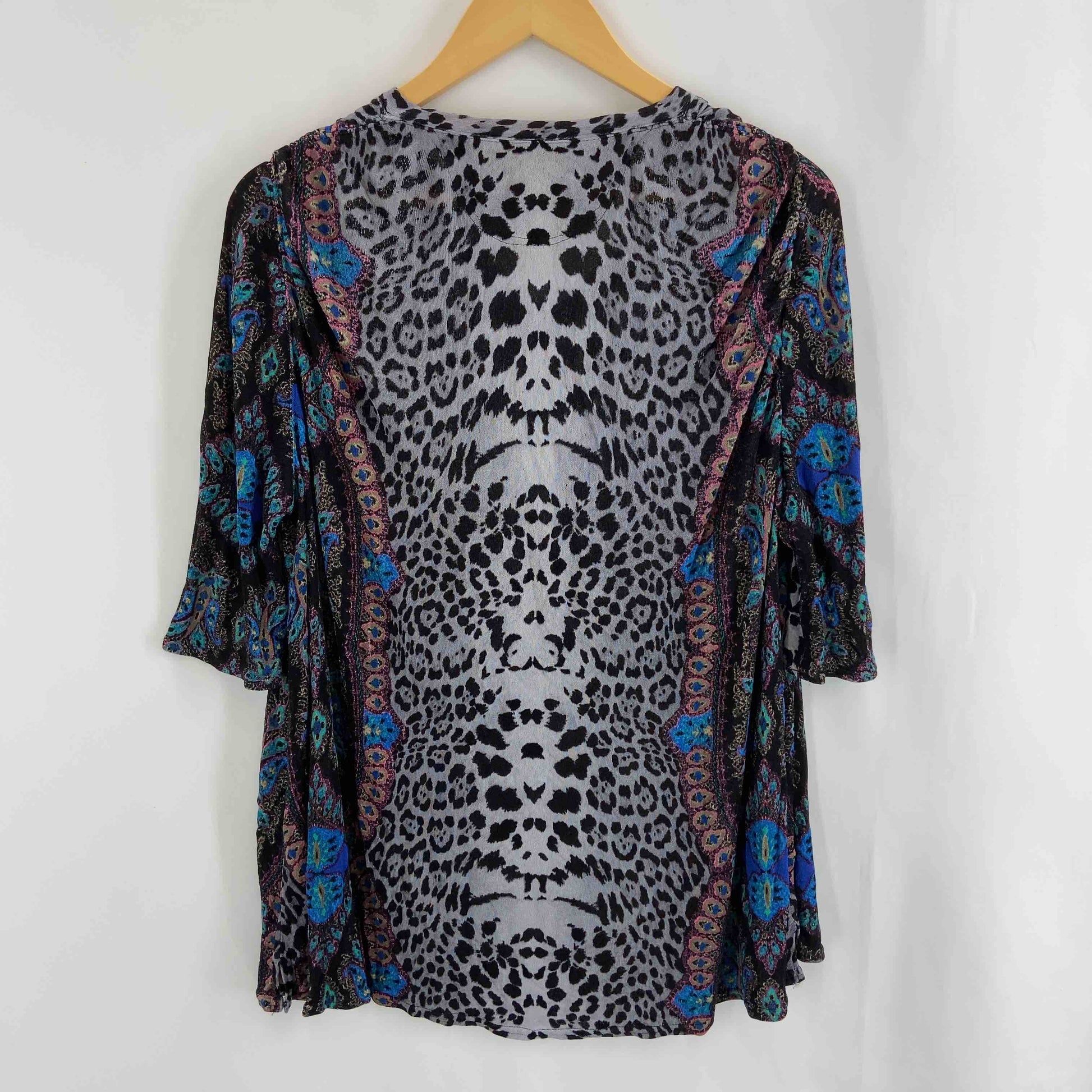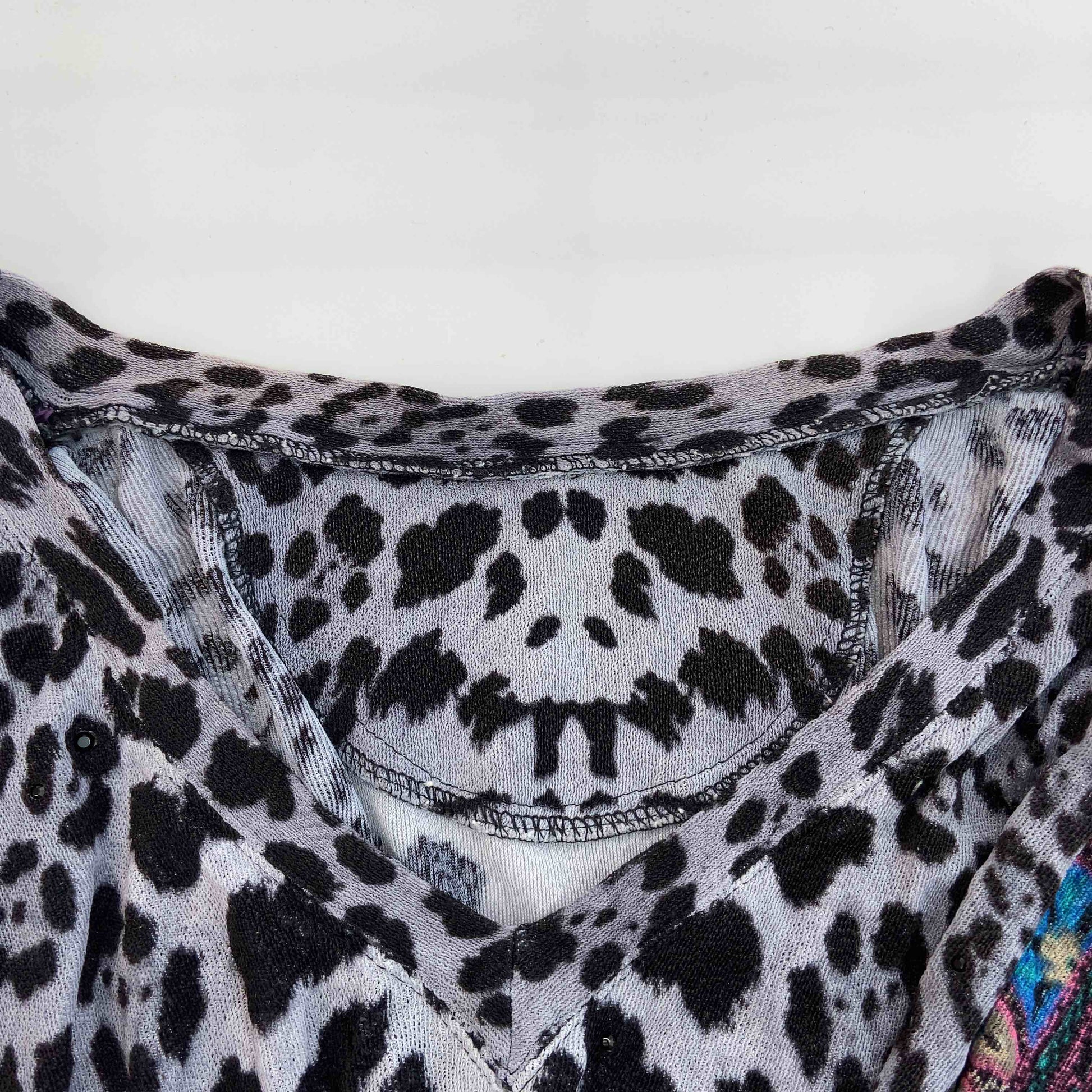 伊太利屋 イタリヤ レディース Tシャツ/カットソー 五分袖 ビーズ装飾 総柄 Vネック