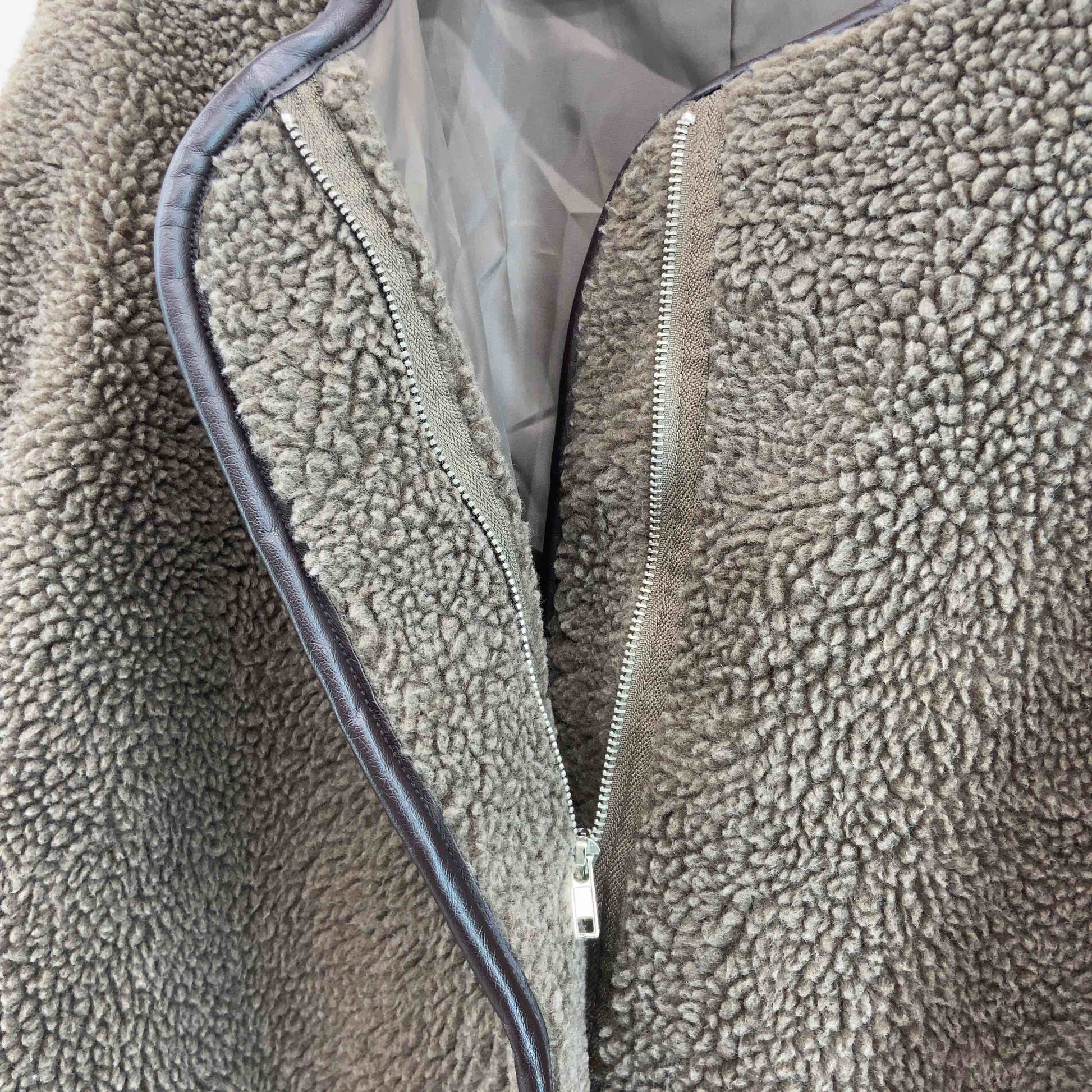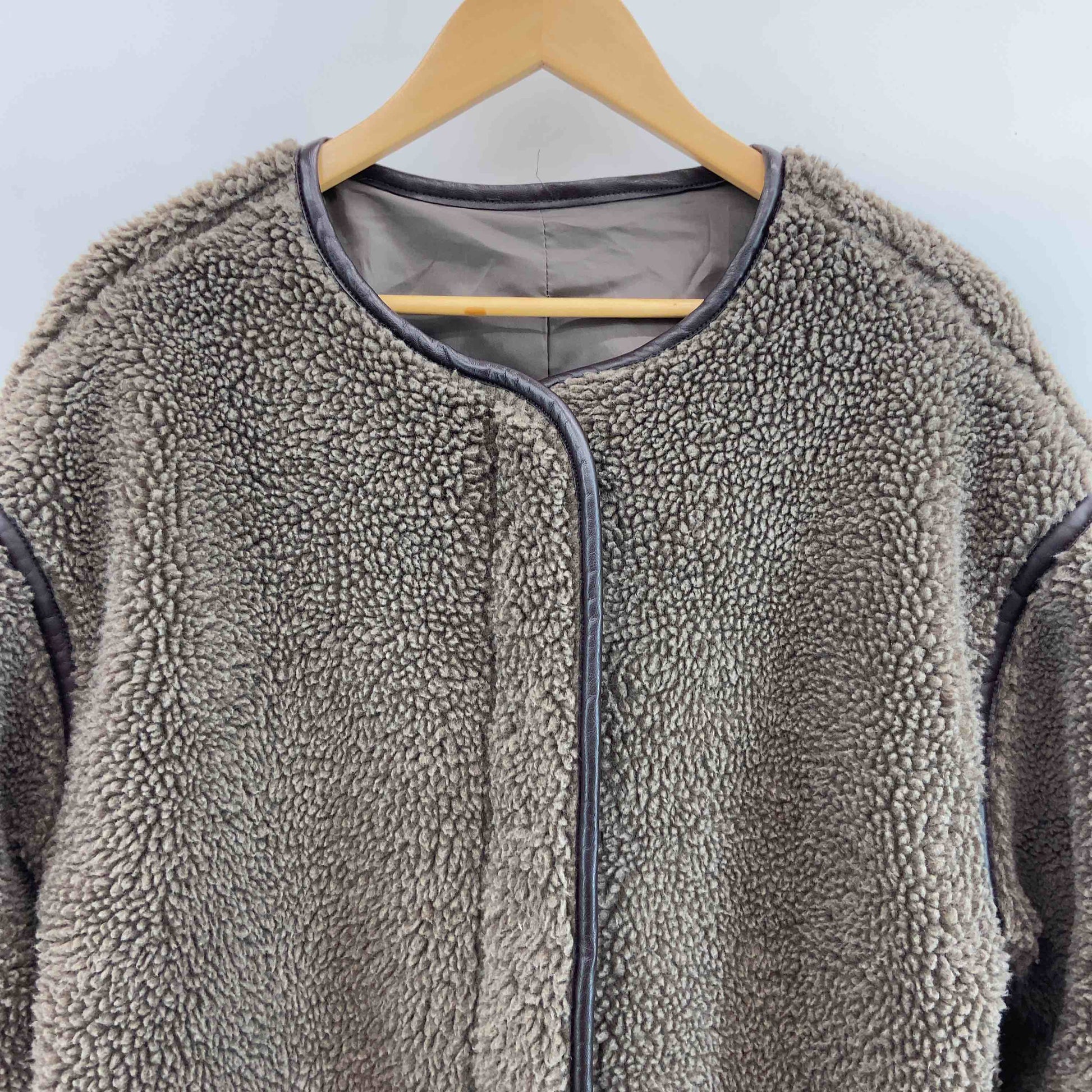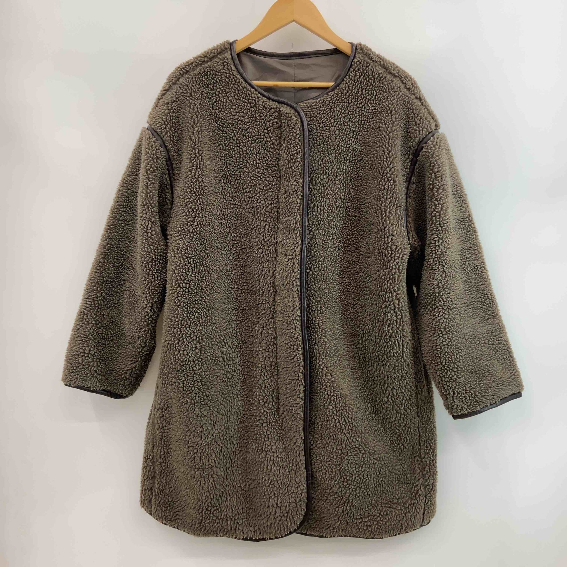 レディース ノーカラージャケット ボアフリースジャケット 茶 ジップアップ