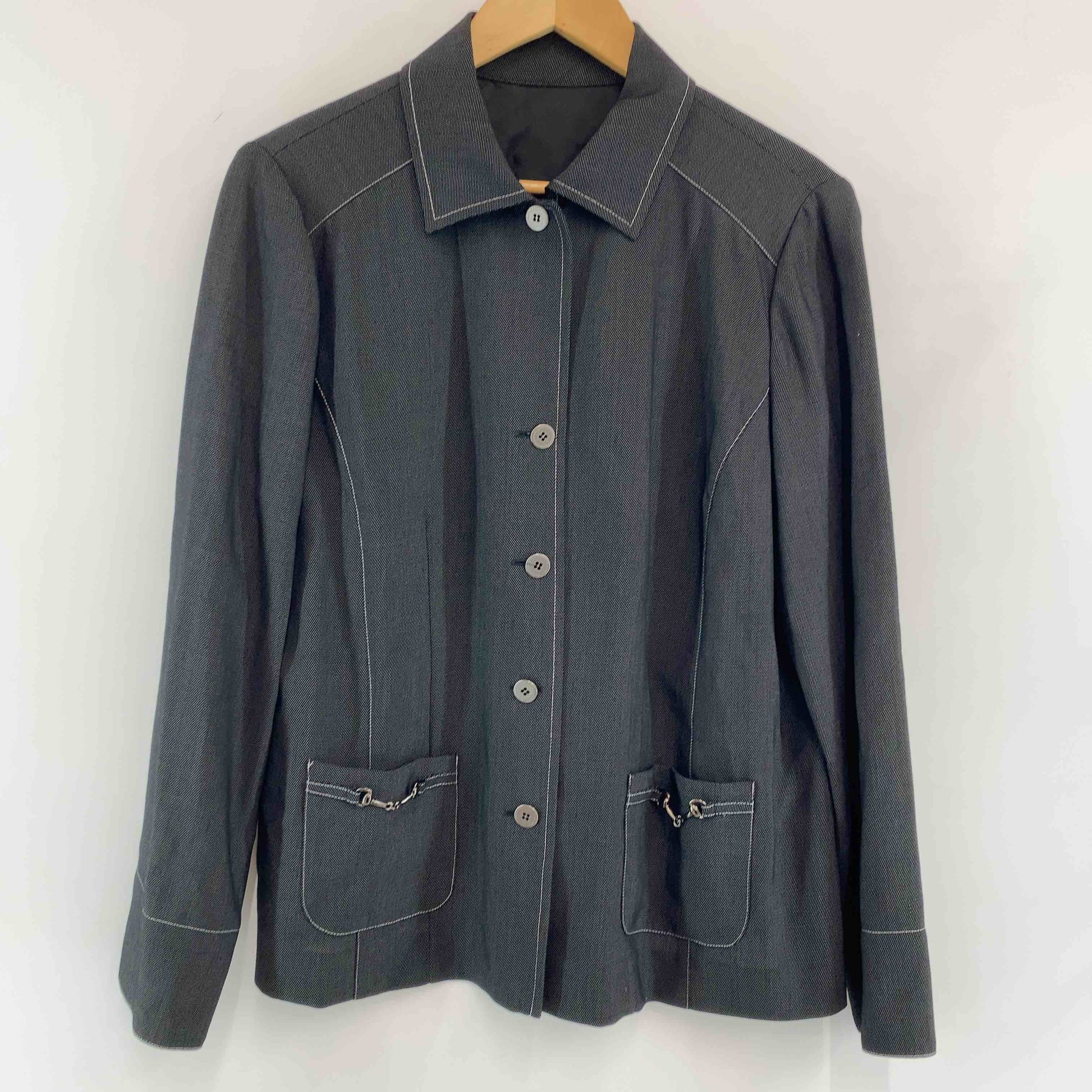Leilian レリアン レディース カラーシャツ ブラック ウール混 羽織り 長袖シャツ ブラウス