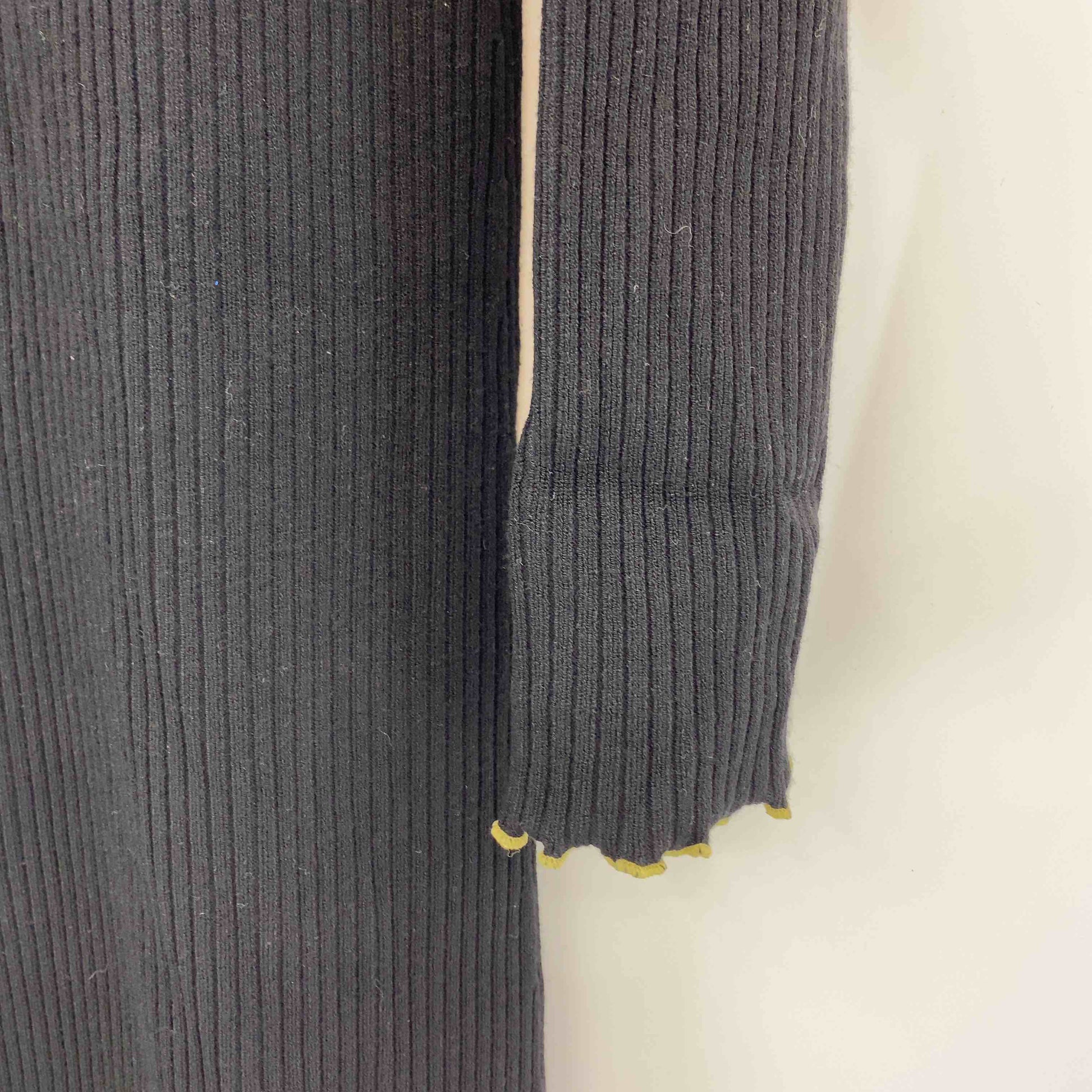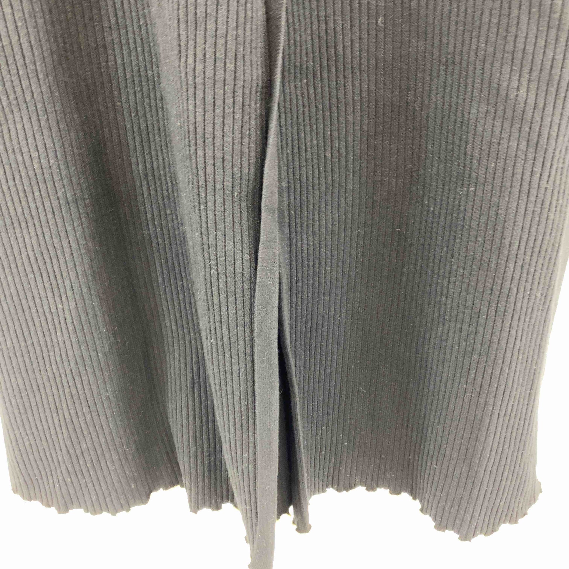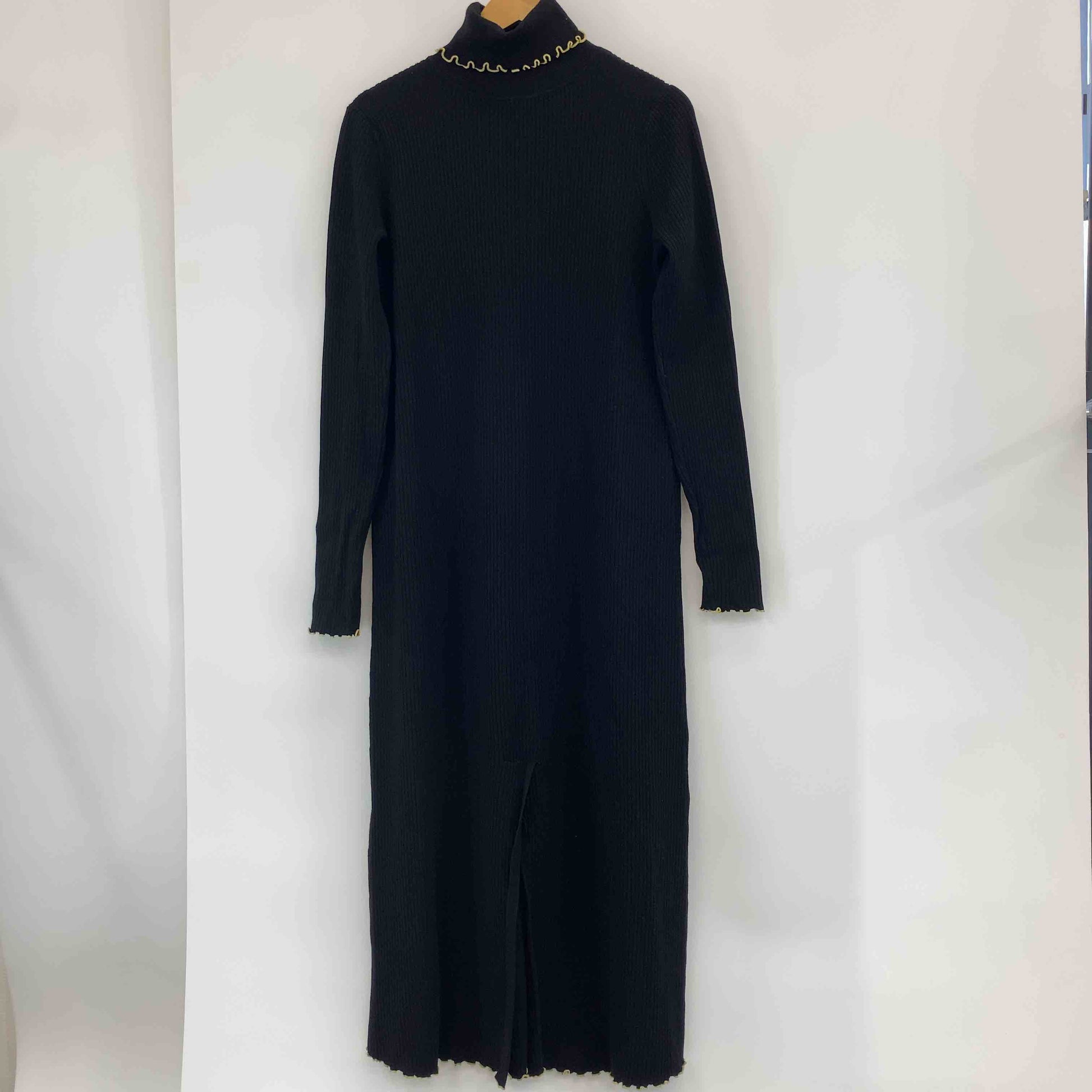 レディース ニットワンピース 黒 リブ編み 裾スリット