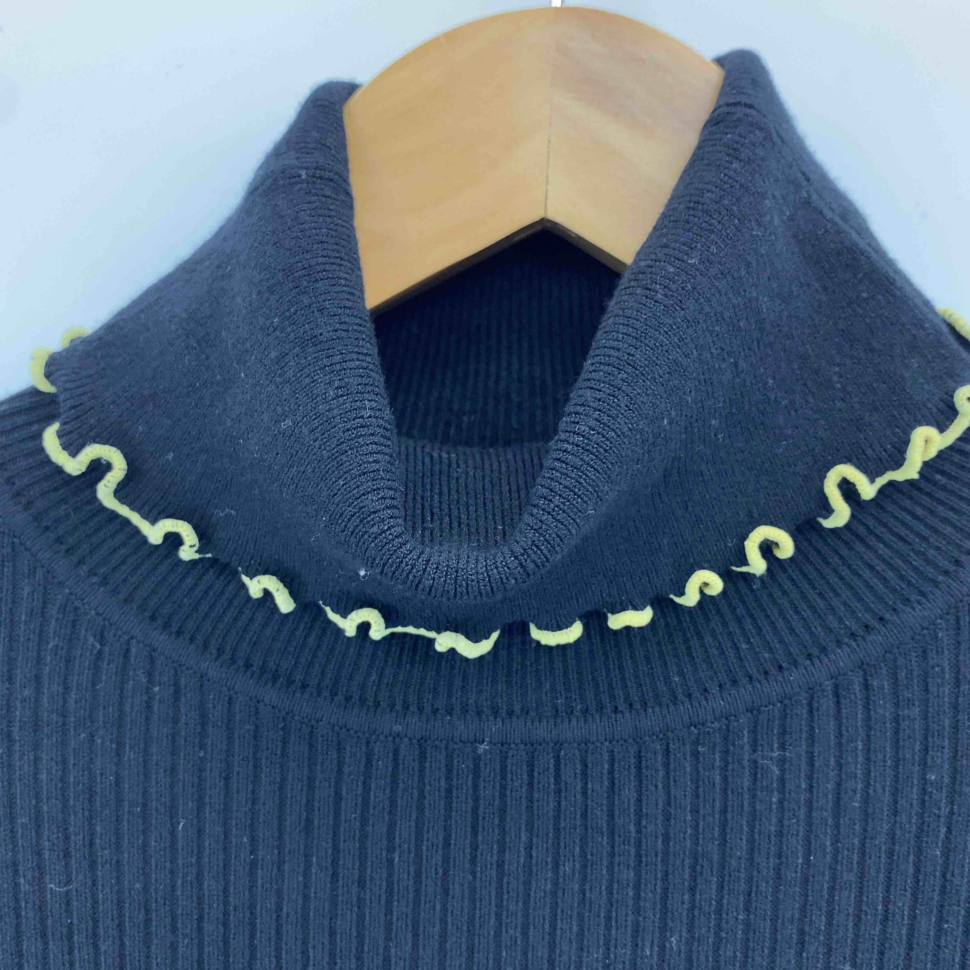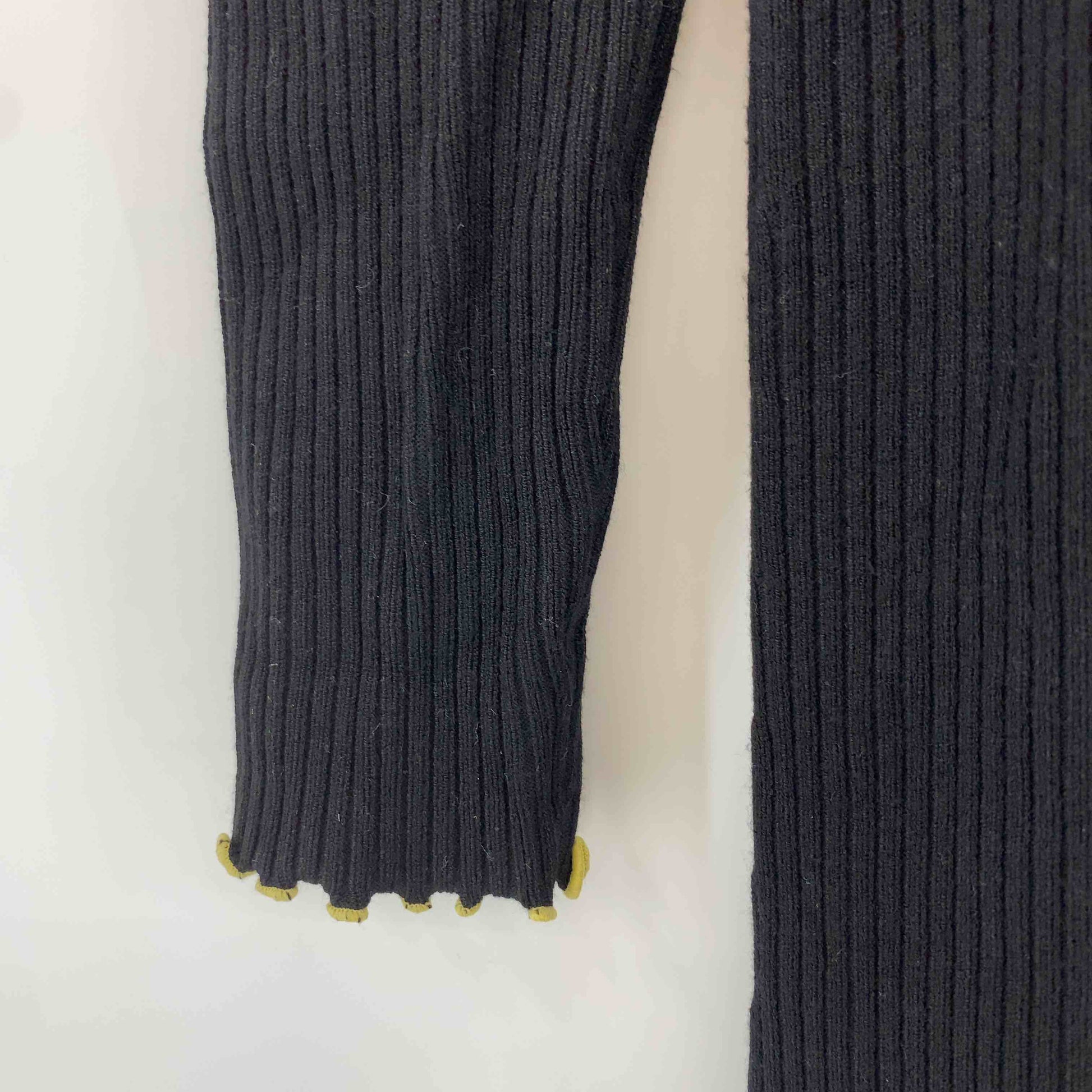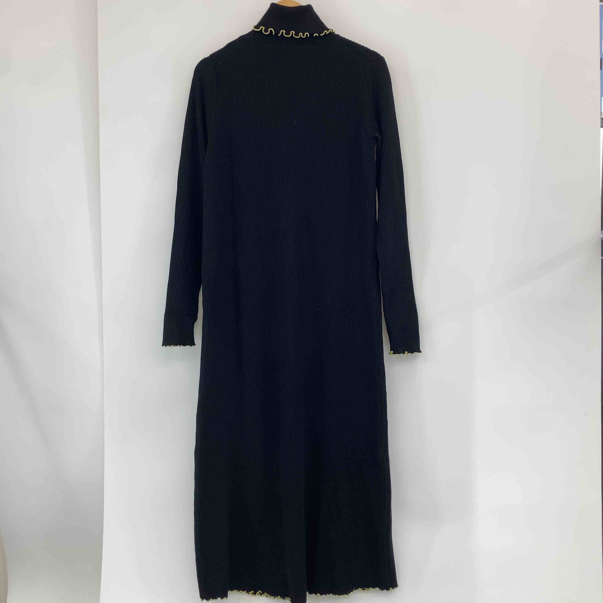 レディース ニットワンピース 黒 リブ編み 裾スリット