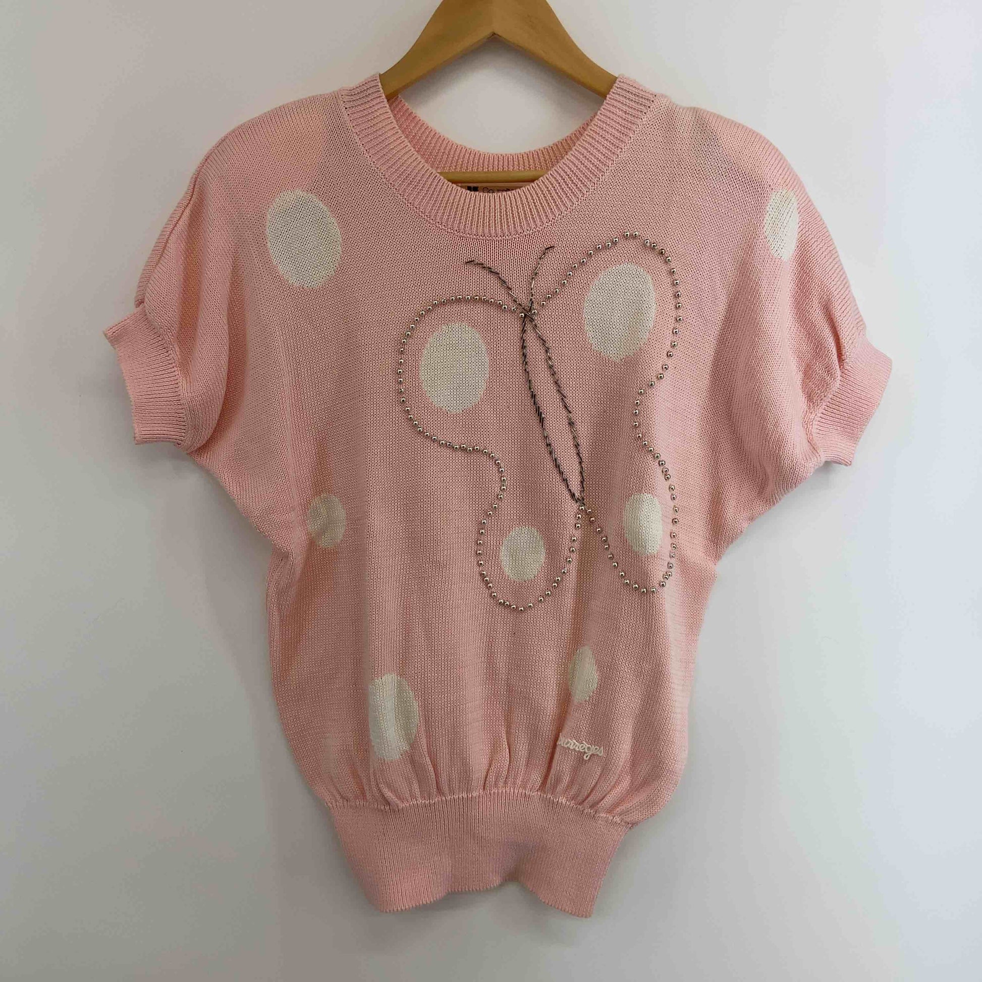 Courreges クレージュ レディース 半袖ニット セーター ピンク 装飾 水玉