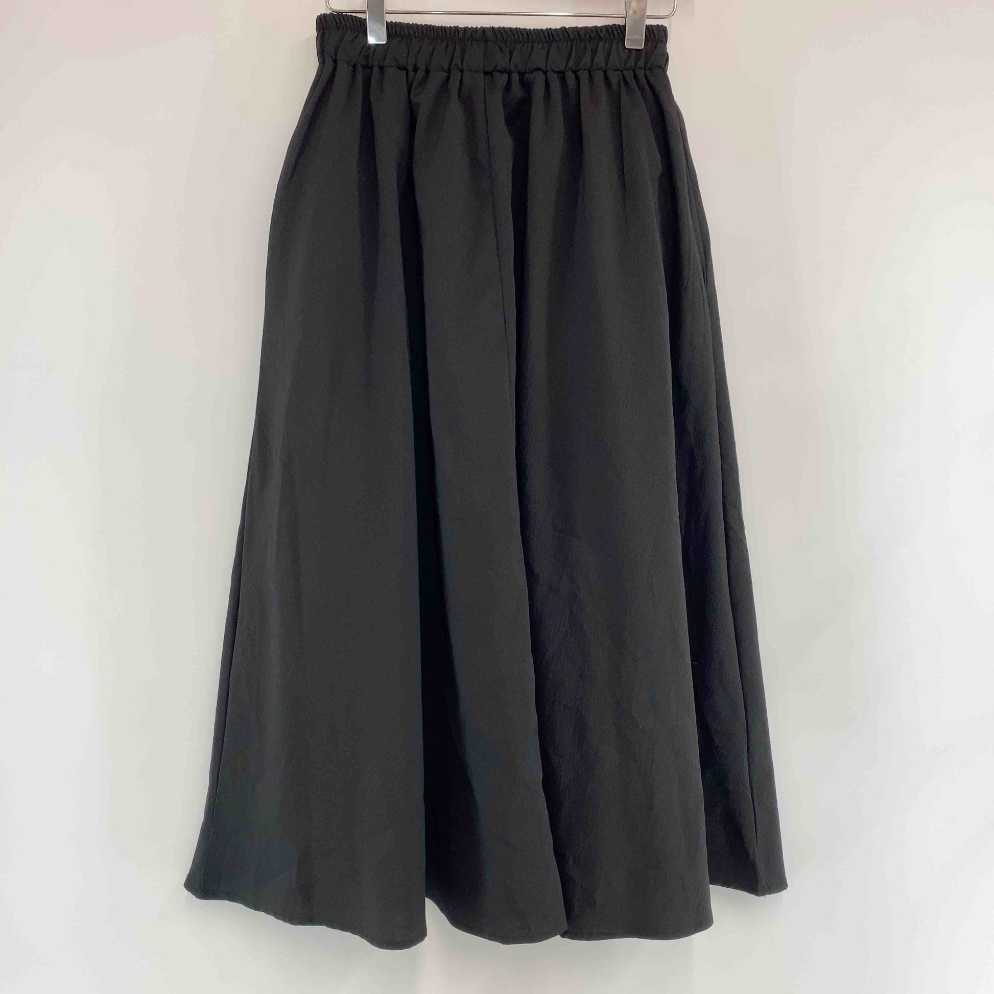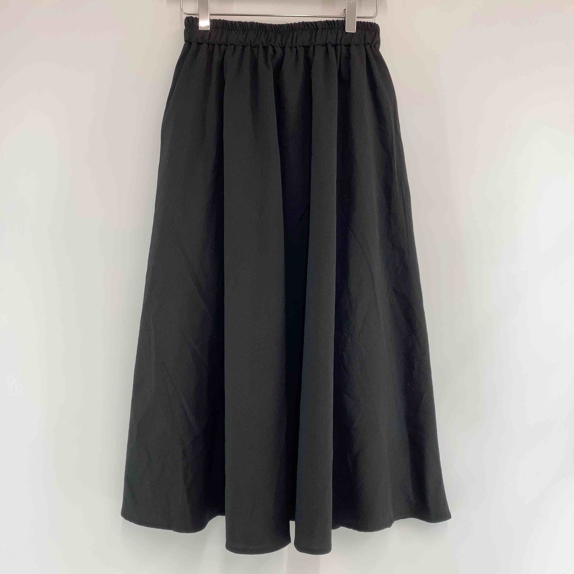 レディース ロングスカート フレア ウエストゴム 黒