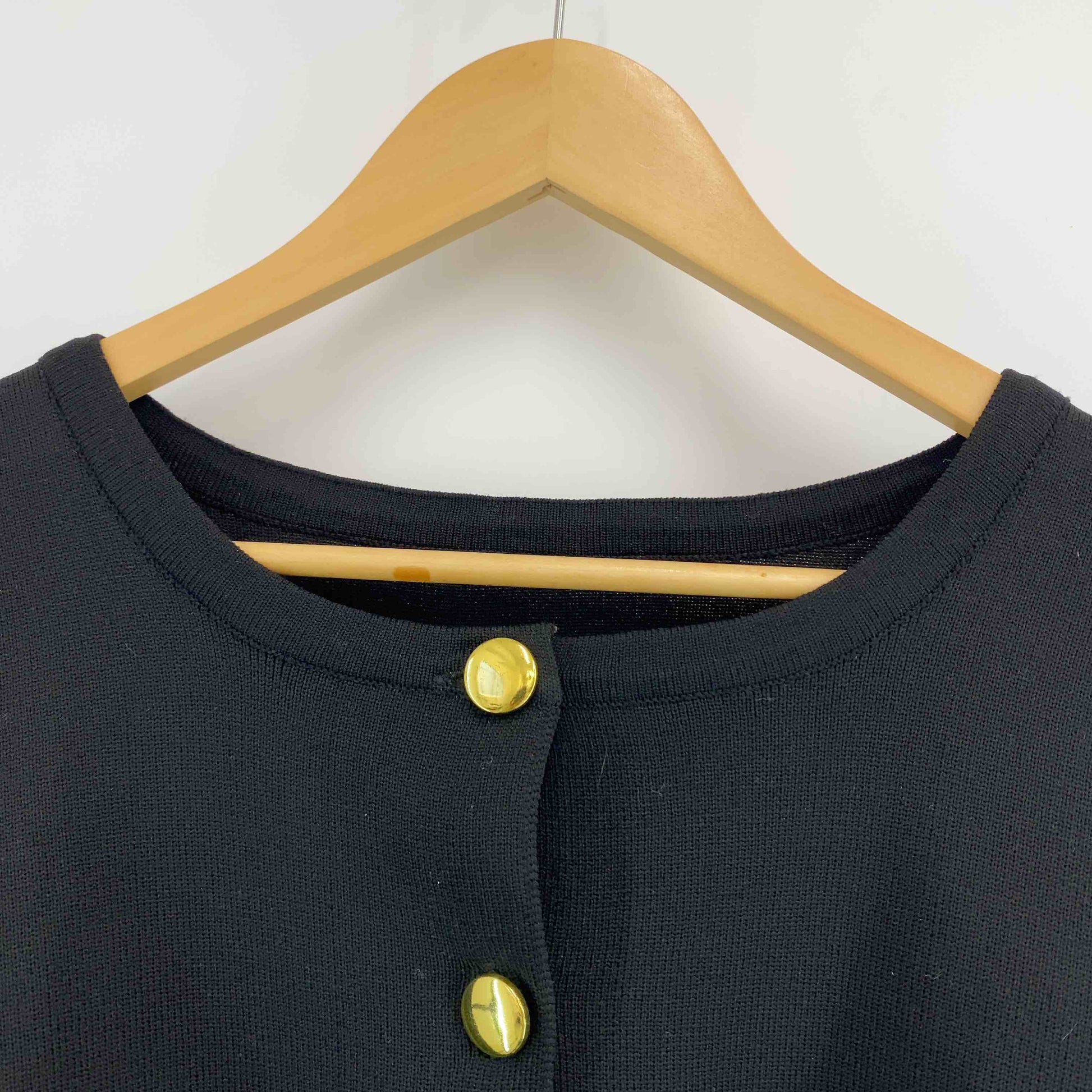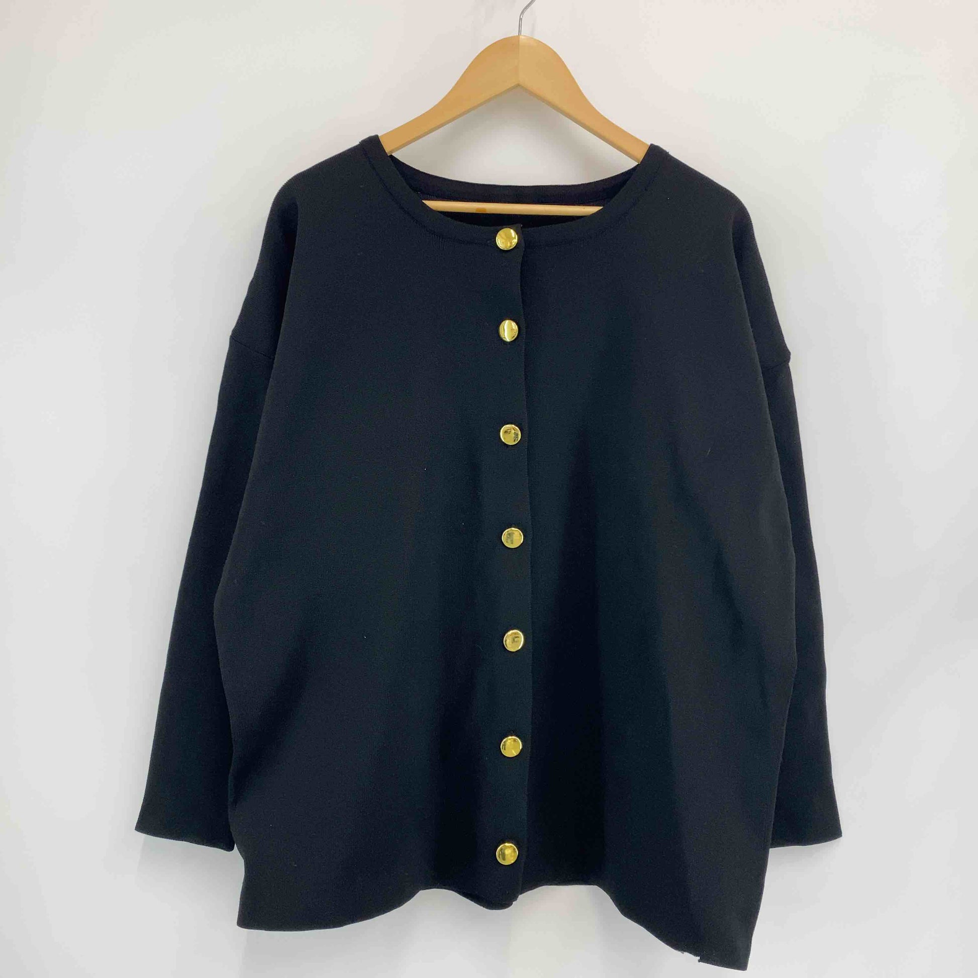 レディース カーディガン 黒 金ボタン クルーネック