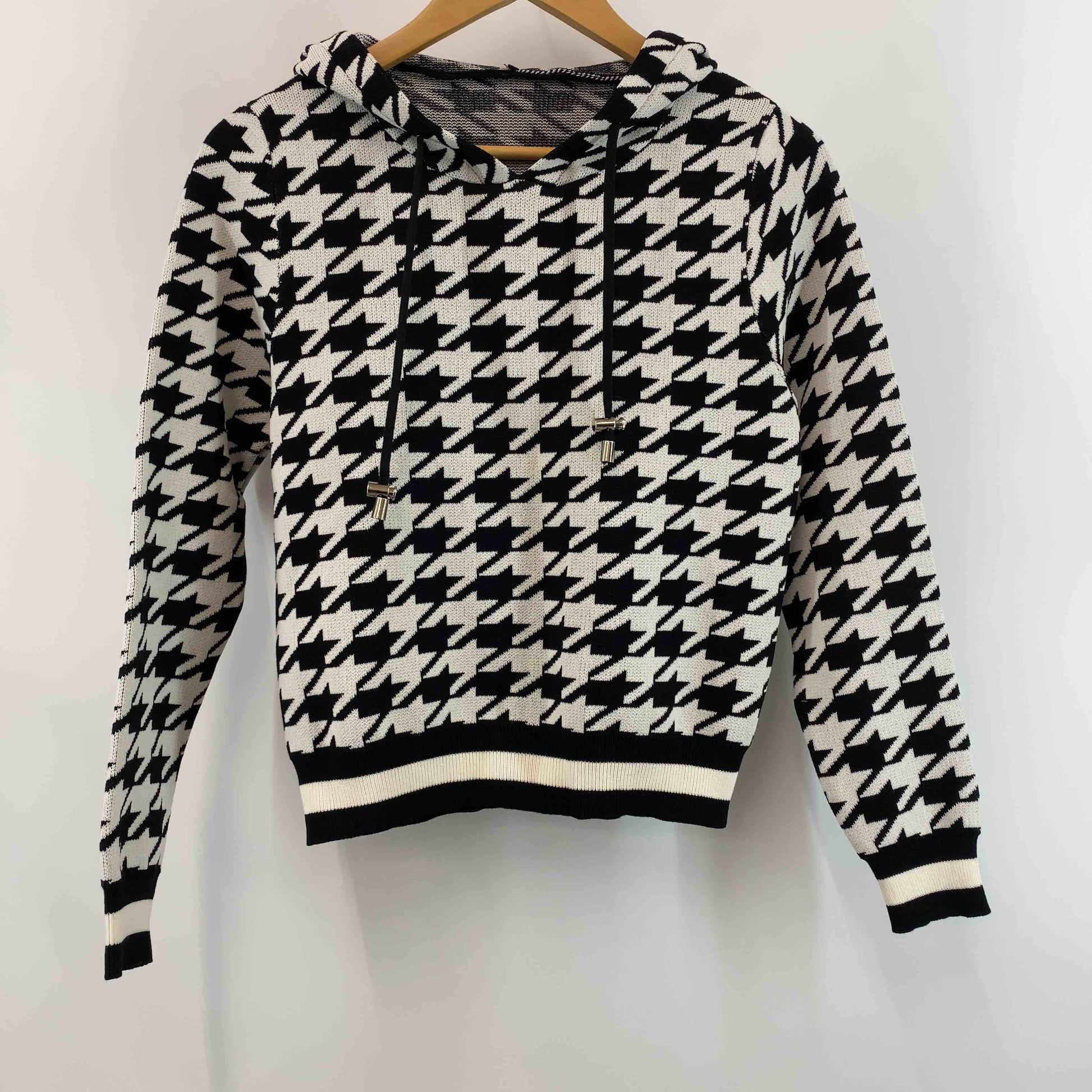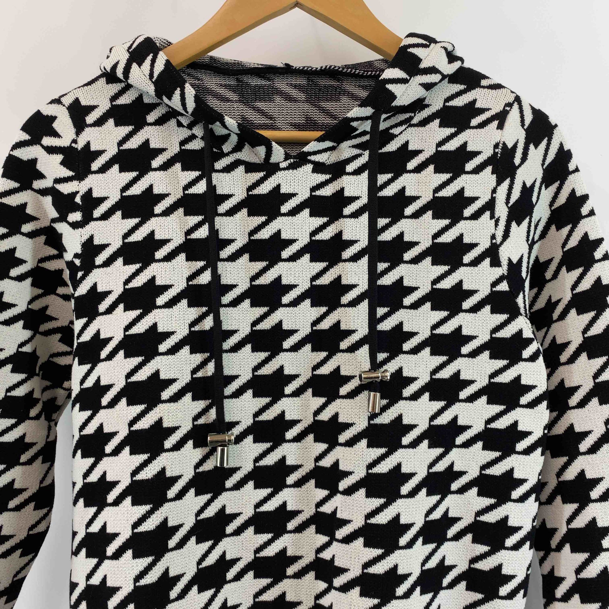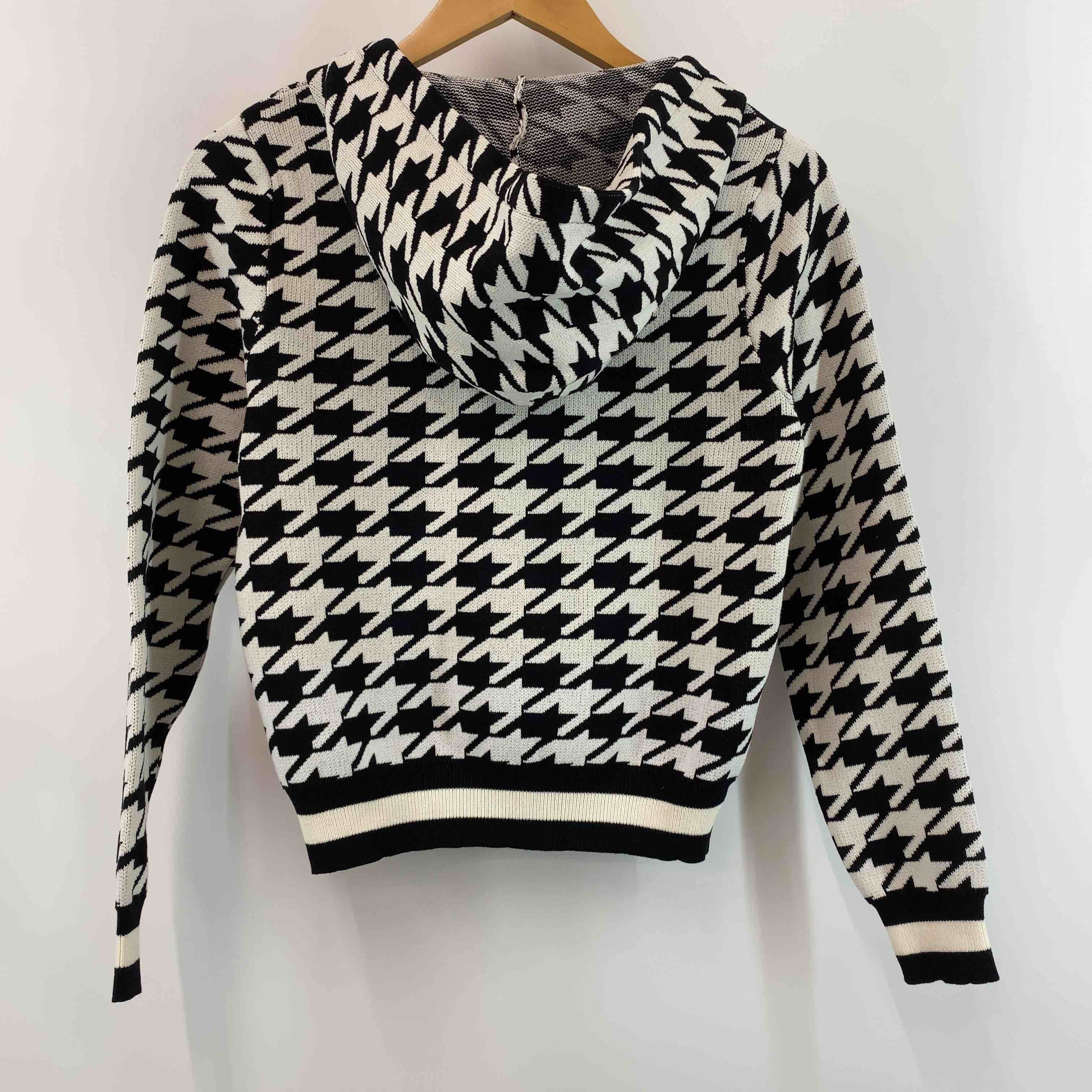 レディース パーカー 千鳥格子 白黒