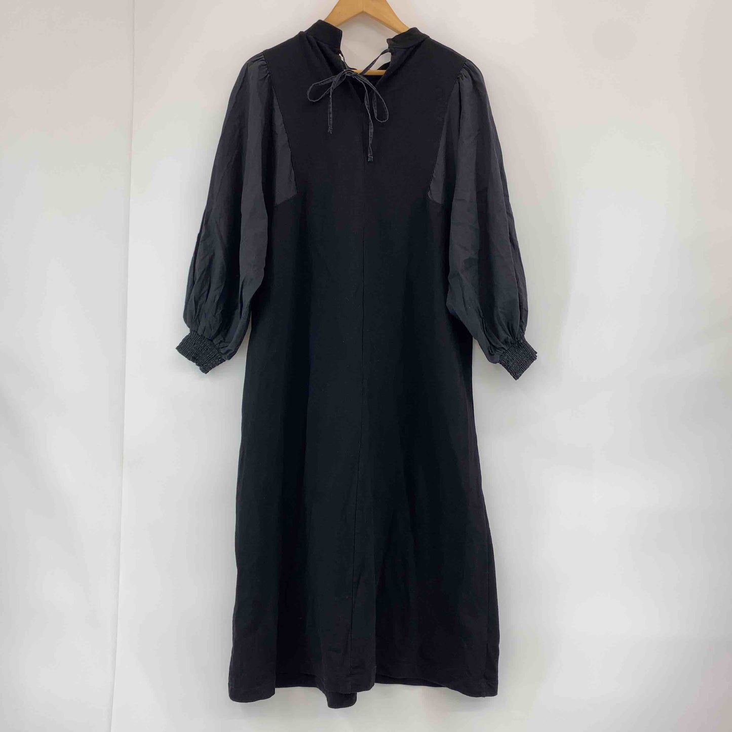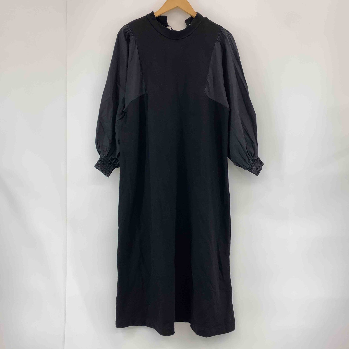 refined works リファインドワークス レディース 長袖ワンピース 黒 墨黒 ドッキングワンピース