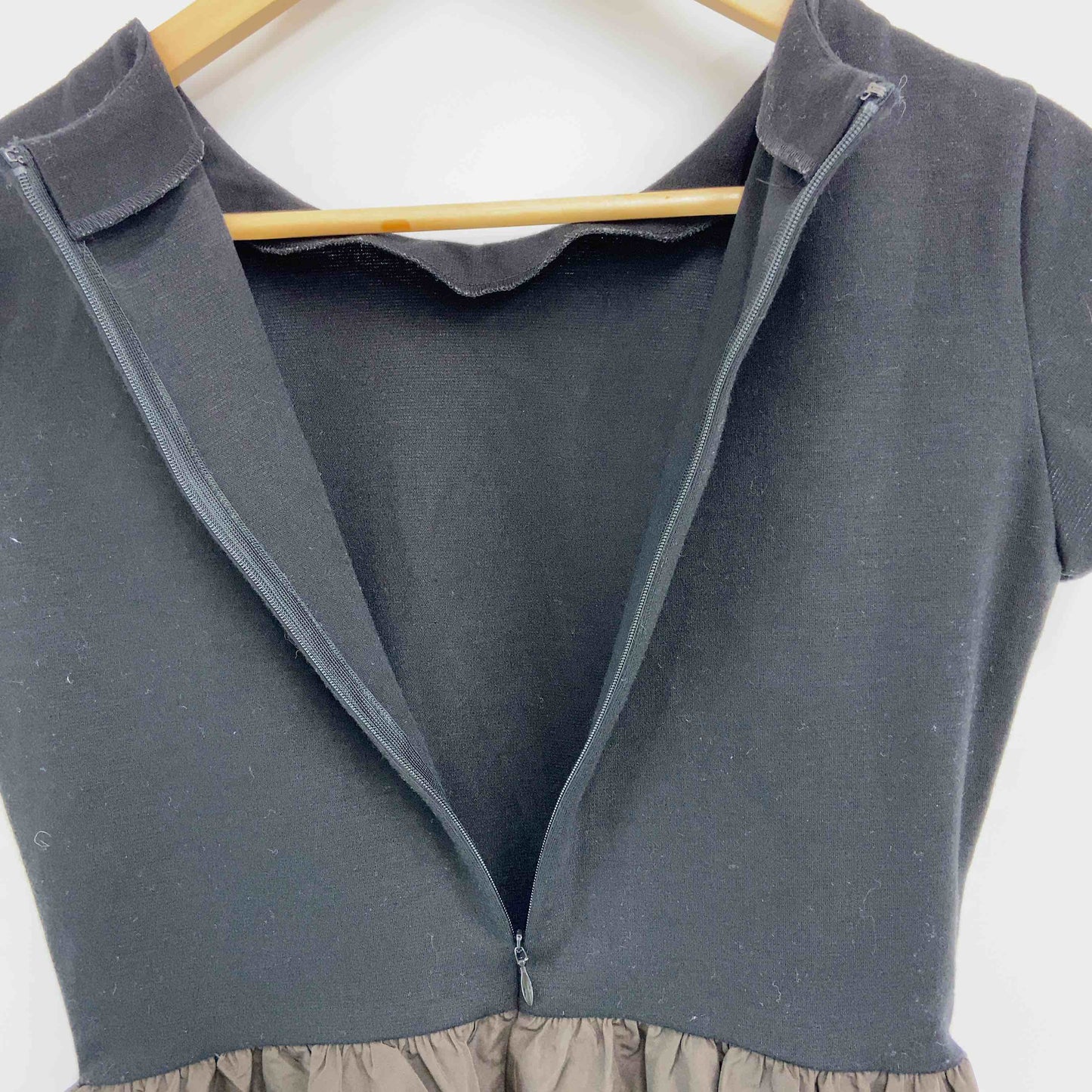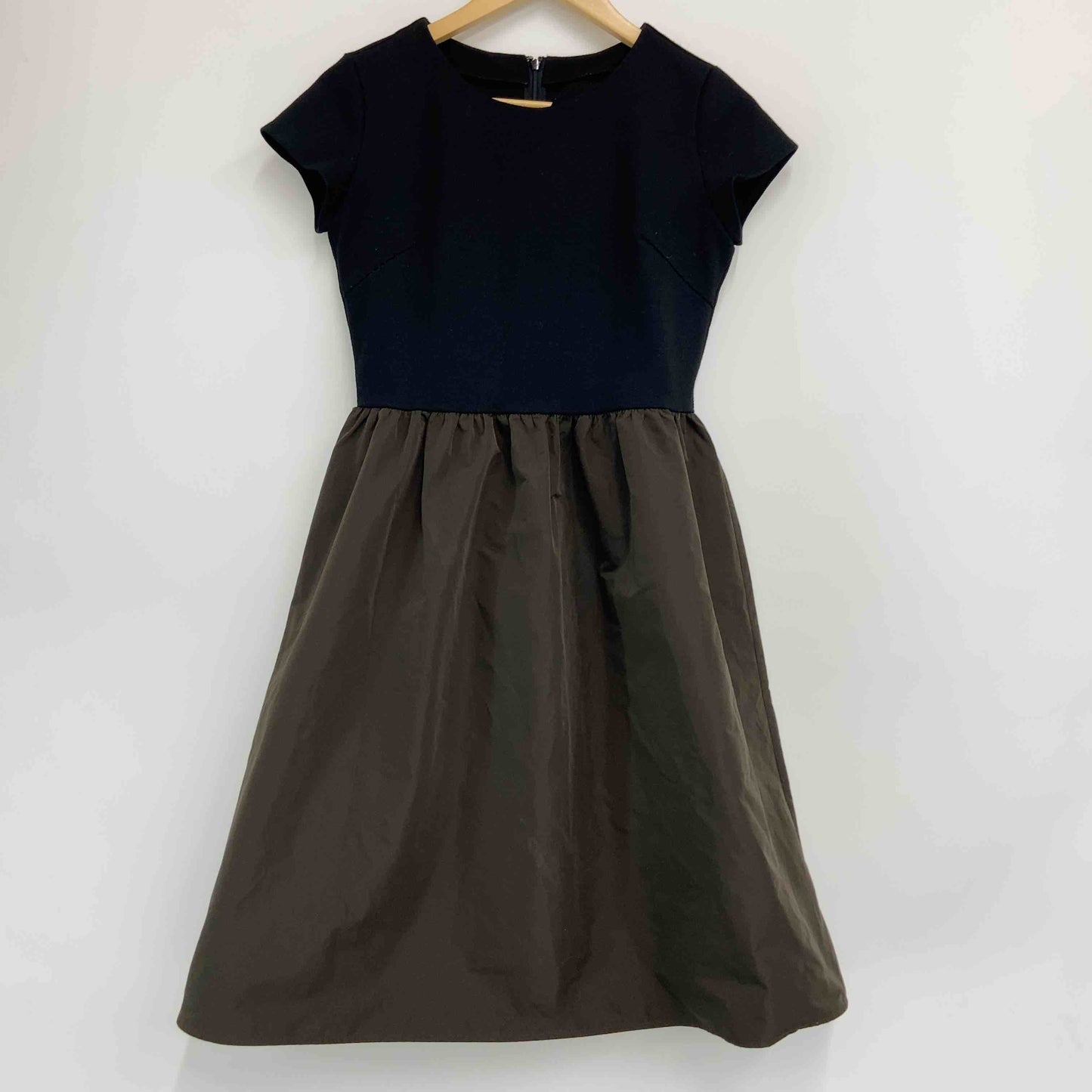 BEAMS Lights ビームスライツ 黒×茶 異素材ドッキングワンピース 無地 レディース ワンピース